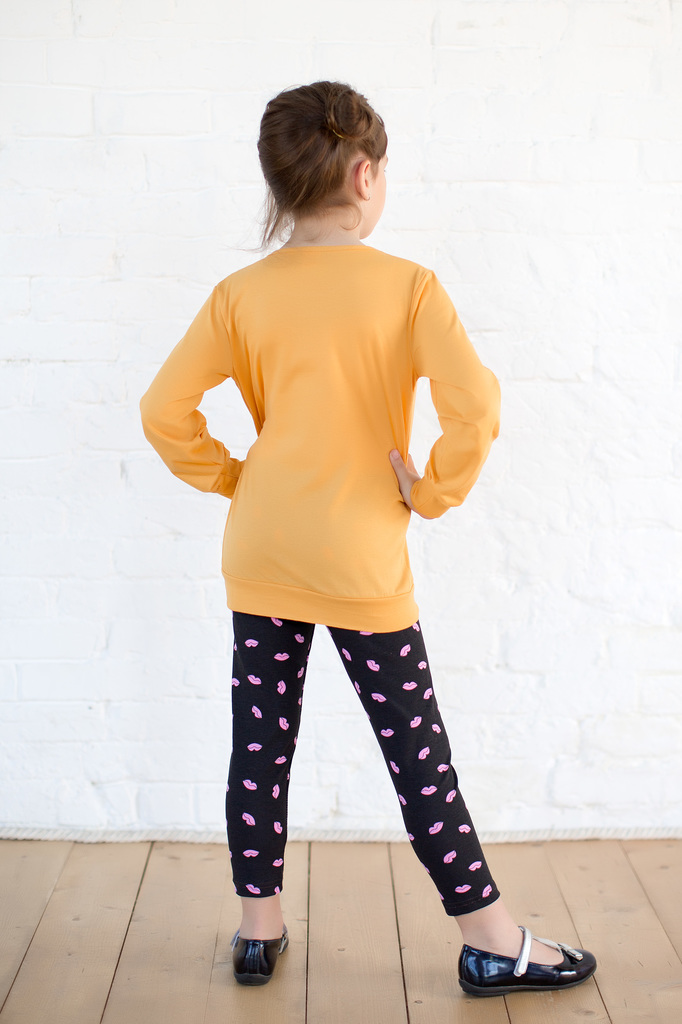 Туники являются неотьемлемой частью любого гардероба, собонно для девочек. Они очень удобны и практичны в любое время года. Их можно носить с любыми легинсами, джинсами или брюками. Данная туника прям... Показать описаниеого кроя, рукава и низ изделия на манжетах. Горловина обрабатывается под окантовку. На полочке изделия очень оригинальный и необычайно красивый принт, весь покрытый блёстками. Ваша принцесса будет неприменно в восторге от такого пополнения своего гардероба. Характеристики: универсальное и практичное изделие; яркий дизайн; длинный рукав; изображение с блёстками; 100% хлопок; солнечные оттенки; машинная стирка; держать вдали от огня.