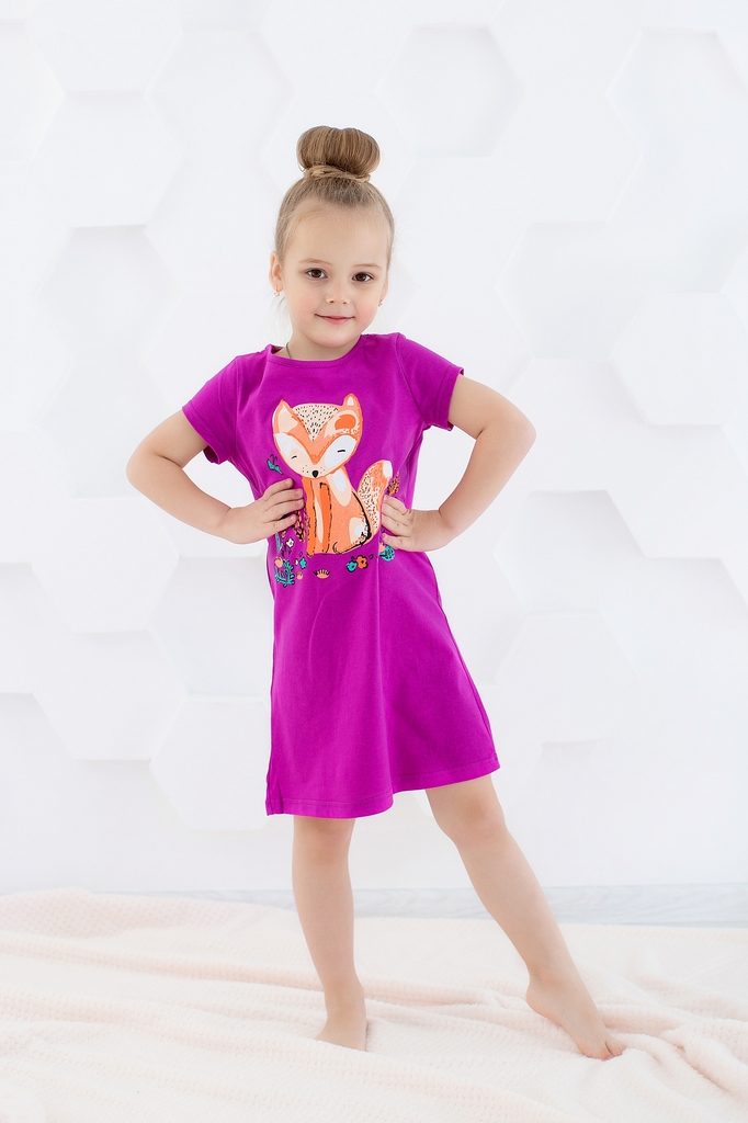 Сорочка имеет классический силуэт-трапеция. Короткие рукава и дышащий хлопковый материал позволяют чувствовать себя комфортно в любых условиях. В этой яркой и оригинальной сорочке ваша малышка будет ч... Показать описаниеувствовать себя уютно как во время сна, так и во время бодрствования. Горловина изделия обрабатывается под окантовку. Полочку украшает очень красивый и яркий принт в виде очаровательного лисёнка. Характеристики: короткий рукав; мягкая ткань из хлопка; яркий стилизованный принт; машинная стирка; 100% хлопок; держать вдали от огня.