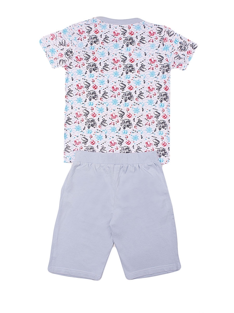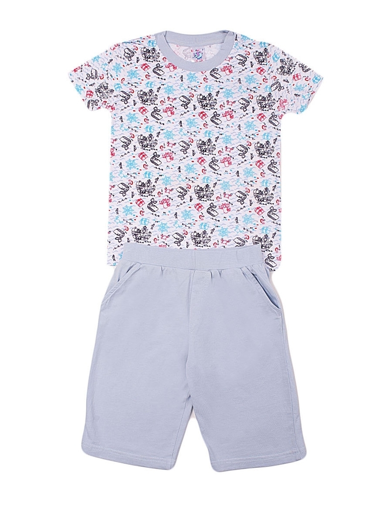 Легкий комплект для мальчика, состоящий из футболки и шорт средней длины. Футболка: классический прямой крой, прямой короткий рукав, неглубокий округлый вырез горловины. Цвет белый, с цветочным принто... Показать описанием черного, синего и красного цвета. По вырезу горловины серая отделка в тон шортам. Шорты: пояс-резинка, высокая посадка, спереди на бедрах есть косые внутренние карманы без застежек. Цвет серый, без декоративных элементов. Материал комплекта качественный хлопок без примесей. Оба предмета хорошо сидят по фигуре, приятны к телу и не сковывают движения, благодаря чему идеально подходят в качестве комфортной домашней одежды на каждый день. Материал: 100% хлопок. Больше картинок и таблица размеров на странице.