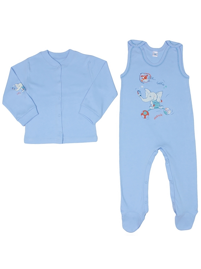 Детский комплет: ползунки и кофточка. Цвет-голубой. На ползунках есть принт в виде слоненка с мячами. Кофточка свободного кроя, рукава снебольшими манжетами. Выполнен комплект из нежного, качественног... Показать описаниео хлопка. Материал: 100% хлопок. Больше картинок и таблица размеров на странице.
