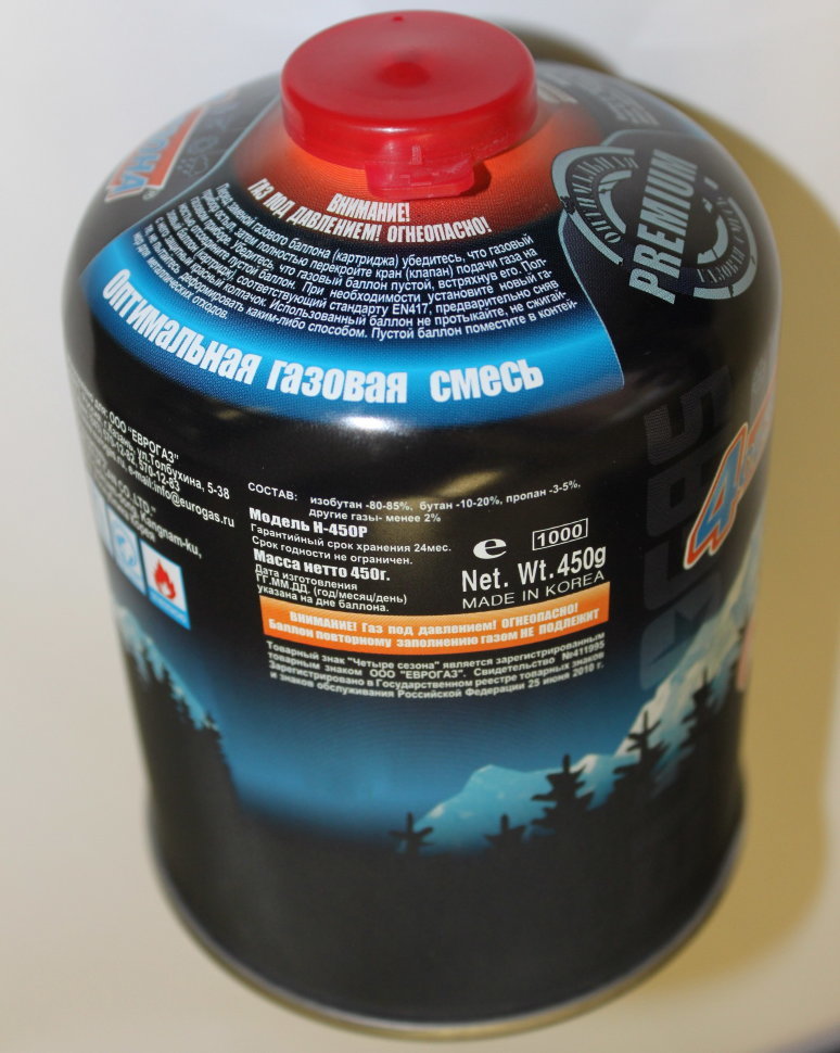Баллон газовый всесезонный ЕВРОГАЗ 450 гр. 4 сезона PremiumВопросы по товару