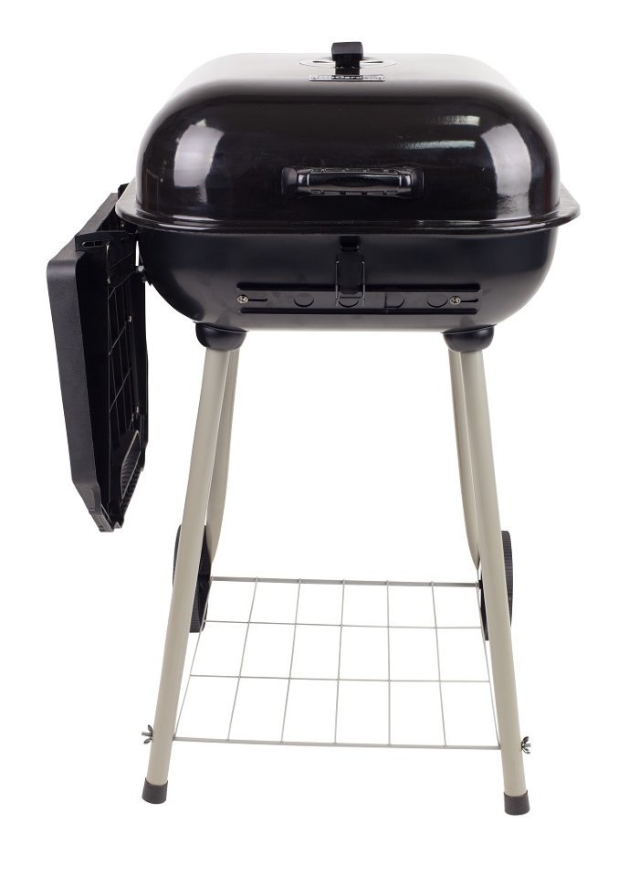 Габариты в упаковке: 50 х 50 х 20 см. Вес: 6.5 кг. Артикул производителя: 50121. Производитель: GO GARDEN. Особенности: на колесах, 1 полка, 1 откидывающаяся полка, регулировка подачи воздуха. Тип: гр... Показать описаниеиль. Материал: сталь, термостойкий пластик, жаропрочная фарфоровая эмаль. Гарантия: 6 месяцев. Все размеры: 86(Д)*55(Ш)*83(В) см. Размер жарочной поверхности- D 46,5 см. Отличное предложение для дачи или загородного дома - гриль-барбекю GoGarden Weekend 46 Comfort. Данный гриль-барбекю можно использовать круглый год: он неприхотлив, мобилен и удобен в использовании. Угольный гриль прямоугольной формы очень эффективен в приготовлении пищи - мясо, рыбу или овощи можно не просто жарить, но и тушить без опасности возникновения открытого огня, просто закрыв крышку гриля-барбекю. Откидывающаяся полка на гриле, выполненная из термостойкого пластика (который прекрасно чистится после готовки), добавляет комфорта в приготовлении пищи. Гриль прямоугольной формы очень эффективен в приготовлении пищи - мясо, рыбу или овощи можно не просто жарить, но и тушить без опасности возникновения открытого огня, просто закрыв крышку гриля. * Удобная форма и конструкция. * Крышка гриля откидывается назад на специальных петлях. * Закрыв крышку гриля можно немного притушить мясо, а также избежать опасности возникновения открытого огня. * Корпус и грилевая решетка покрыты жаропрочной фарфоровой эмалью. * Регулировка поддува. * Складная боковая полка для кухонных принадлежностей. * Нижняя полка для аксессуаров. * Колеса для транспортировки.