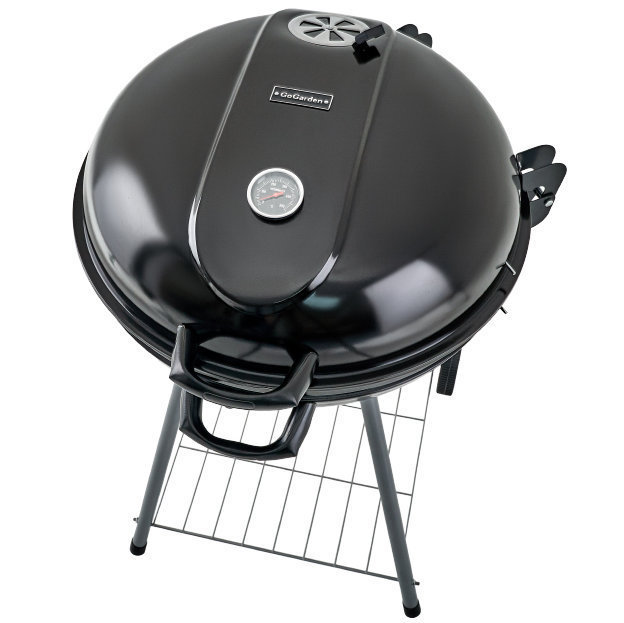 Габариты в упаковке: 38 х 38 х 44 см. Вес: 2.8 кг. Артикул производителя: 50156. Производитель: GO GARDEN. Особенности: регулировка подачи воздуха, переносной гриль. Тип: гриль. Материал: сталь, термо... Показать описаниестойкий пластик, жаропрочная фарфоровая эмаль. Гарантия: 6 месяцев. Все размеры: 38(Д)*38(Ш)*44(В) см. Размер жарочной поверхности- D 37 см. Небольшой переносной гриль премиальной серии идеален для выходов или выездов на природу. Благодаря небольшому размеру легко помещается в багажник автомобиля. У него отличная конвекция и очень практичный дизайн. Жаропрочные и устойчивые к коррозии крышка и жаровня гриля покрыты фарфоровой эмалью, что обеспечивает высокий срок службы. Поворотные вентиляционные заслонки на крышке и жаровне гриля обеспечивают нужный приток воздуха для правильной конвекции внутри гриля и для управления уровнем жара. Закрыв крышку гриля, можно немного притушить приготавливаемое блюдо, а также избежать возникновения открытого огня. Держатель крышки – стальная дуга – надежно фиксирует крышку сверху на своем месте, что очень удобно при транспортировке гриля. Стальная решетка гриля хромирована, что защищает ее от коррозии и увеличивает срок службы. Ручка крышки из нейлона, армированного стекловолокном, устойчива к высоким температурам. Закрыв крышку, можно немного притушить мясо, а также избежать опасности возникновения открытого огня.