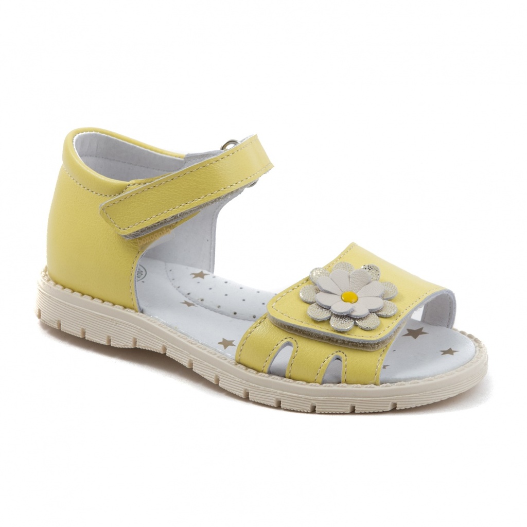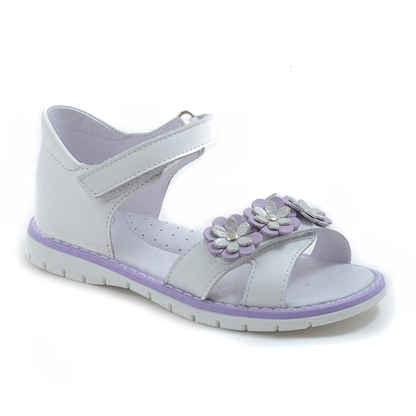 Легкие летние открытые туфли для девочки. Модель выполнена из натуральной кожи с восковой отделкой, естественные цвета - подчеркнутая натуральность. Туфельки украшены объемными цветочками. Закрытая пя... Показать описаниеточная часть фиксирует стопу. Союзочная (передняя) часть с возможностью регулировке по полноте. Черезподъемный перехватный ремень - возможность регулировки по подъему стопы. В модели использована подошва с пучково-носочным и пяточным перекатами с уширением в пяточно- геленочной части. Функция такой рациональной подошвы - создать условия для нормального развития стопы ребенка, обеспечить комфорт при ношении. Стелька кожаная с подсводным возвышением - дополнительный комфотр. Полнота средняя - 3.