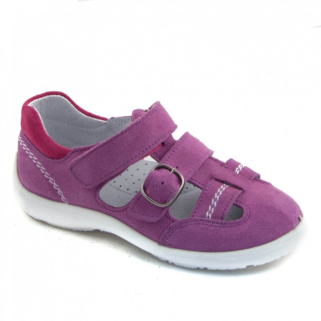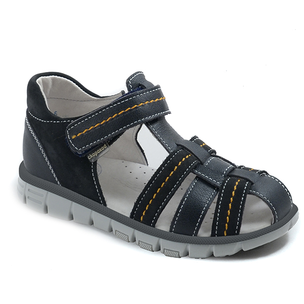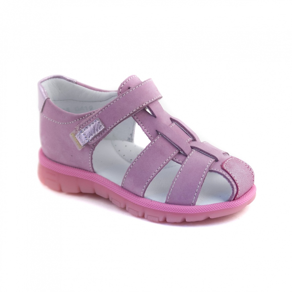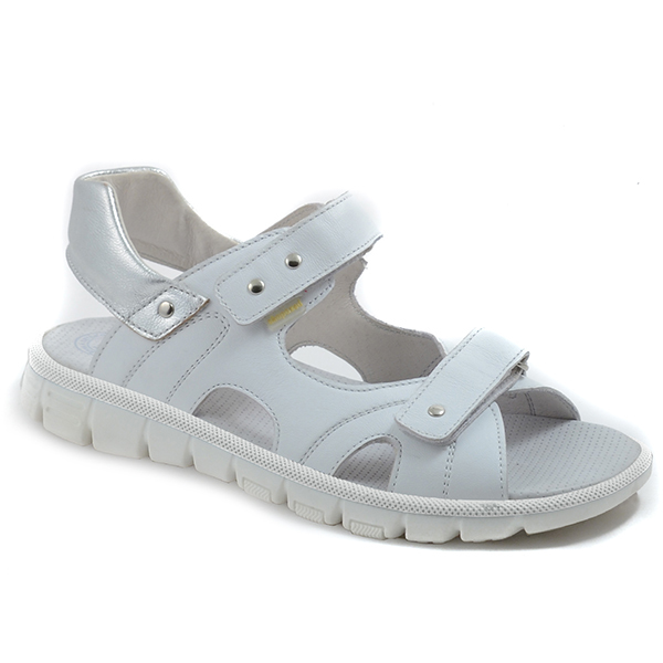 Комфортная открытая модель для лета, а так же в качестве сменной обуви. Закрытая пятка, крепление на велкро и частично закрытая носочная часть. Вставка из специального материала для защиты носка от сб... Показать описаниеивания. Расклешенный протектор на ходовой части подошвы с зонами гибкости обеспечивает дополнительный комфорт, амортизацию и устойчивость. Мягкая кожаная стелька с латексным подсводником придает максимум комфорта при носке. Полнота средняя - 3, два перекидных ремня на велкро позволяют регулировать обувь по ножке любой полноты и объема.