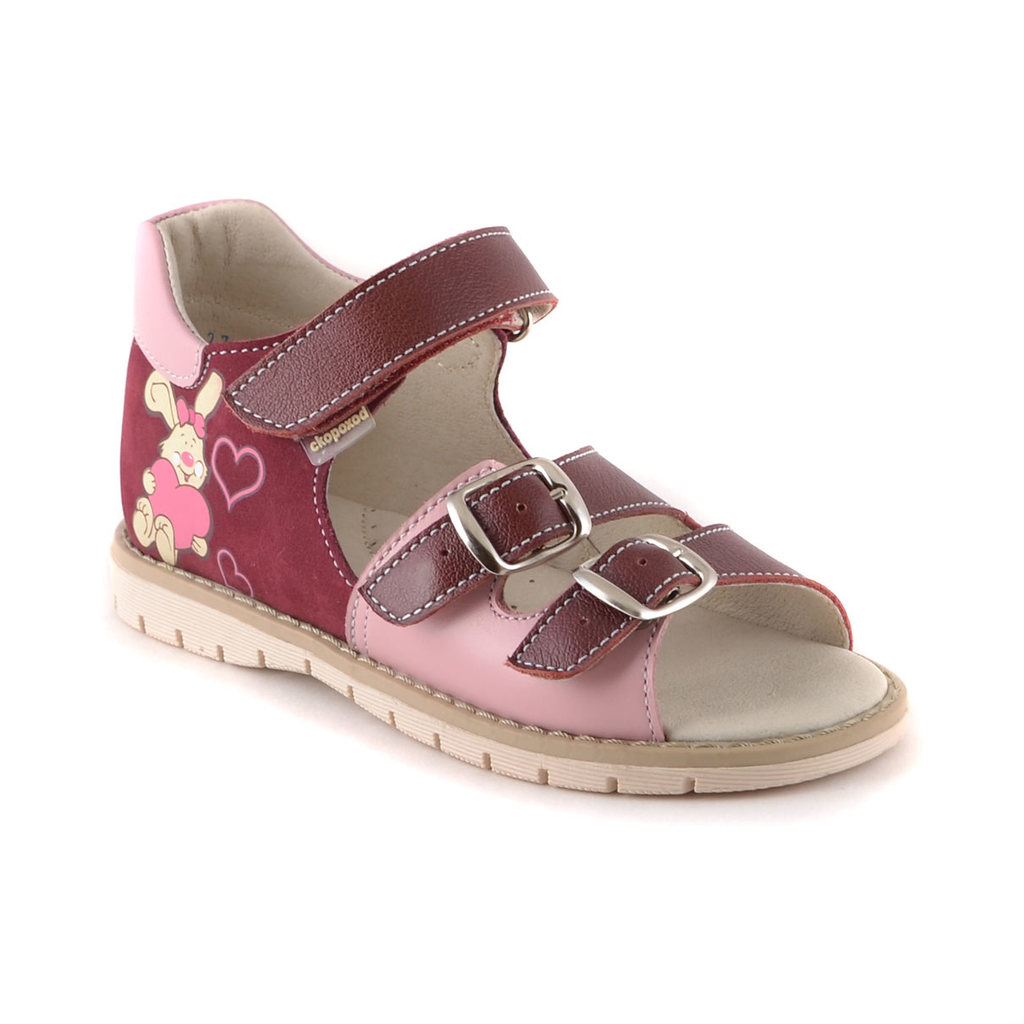 Сандалии насыщенного бордового цвета с небольшими цветовыми вставками розового, могут подойти как на повседневную носку, так и на праздничные события! Модель с защитой носочной части из специального м... Показать описаниеатериала – всегда аккуратный вид. Легкая и гибкая подошва, надежный задник и стелька из лицевой подкладочной кожи создадут дополнительный комфорт. Использование "подноска" позволяет сохранять форму носочной части и выполняет защитную функцию для пальчиков ребенка. Модель имеет умеренный подсводник для профилактического эффекта.