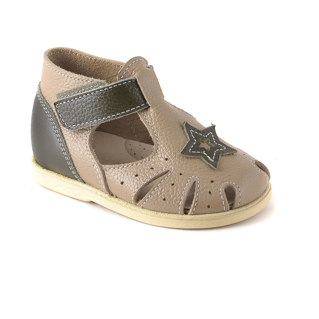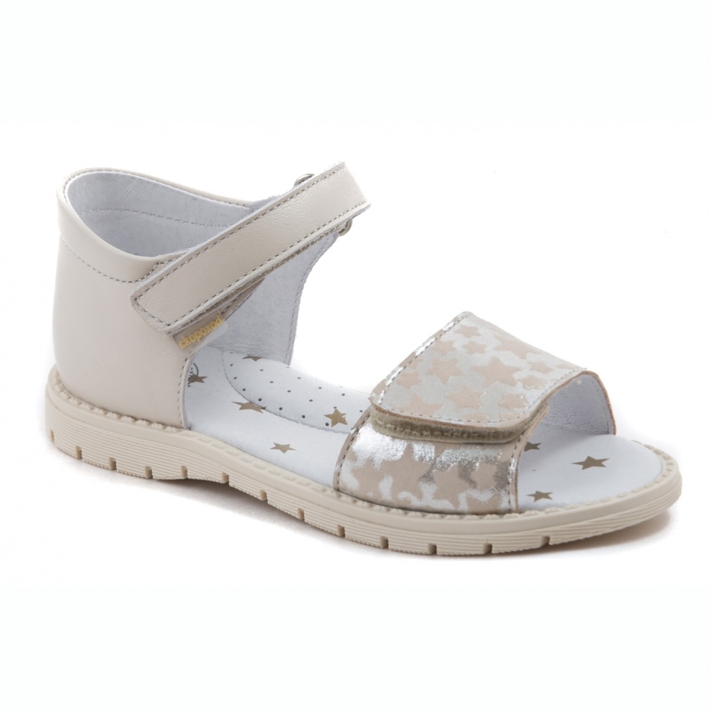 Легкие летние открытые туфли. Пастельные цвета, сочетание текстур гладкой кожи и нубука, союзочная часть выполнена из тиснёного нубука - очень красиво смотрятся на ножке! Для летних прогулок , а также... Показать описание отлично подходят для сменной обуви. В модели использована подошва с пучково-носочным и пяточным перекатами с уширением в пяточно- геленочной части. Функция такой рациональной подошвы - создать условия для нормального развития стопы ребенка, обеспечить комфорт при ношении. Полнота средняя - 3. Чересподъемный ремень перехватный- возможность регулировки по подъему. Союзочный ремень с возможностью регулировки по полноте. Кожаная стелька с подсводным возвышением украшена принтом "Звёздочки".