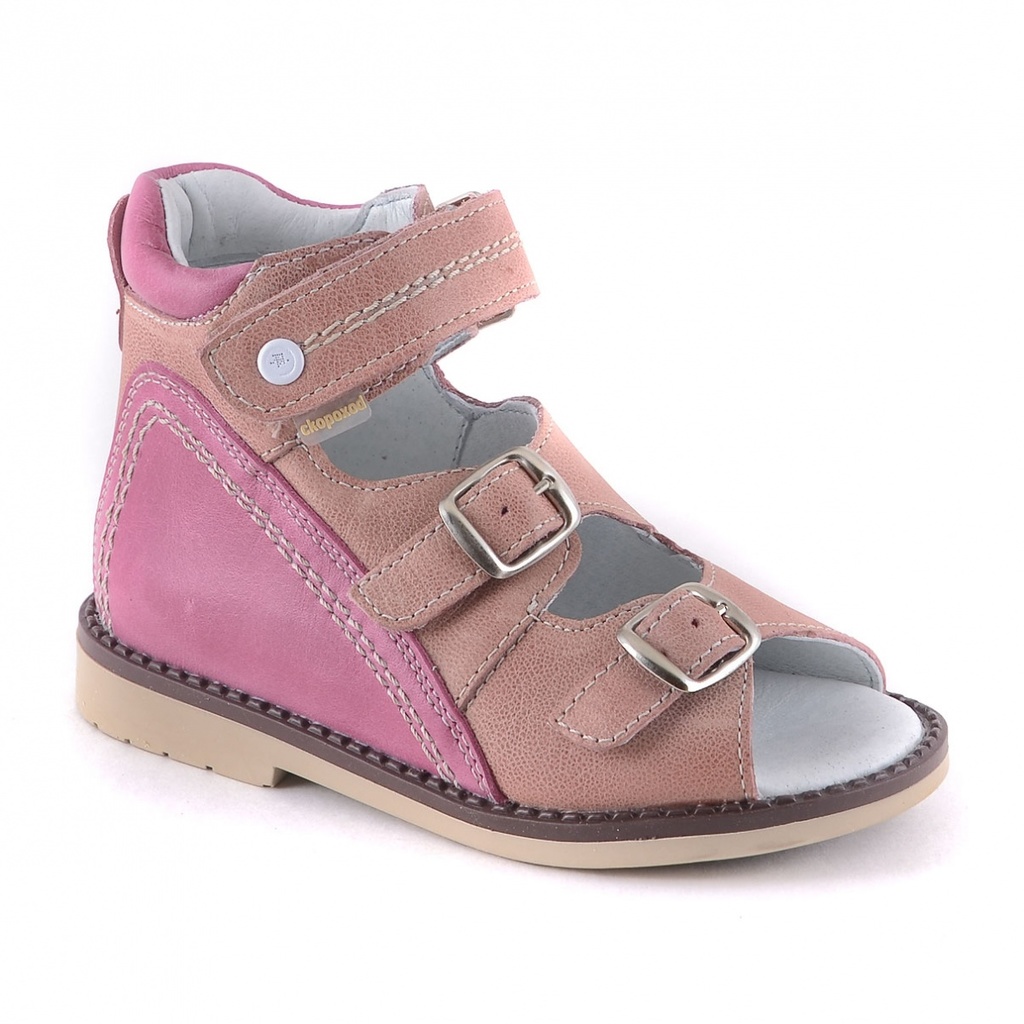 Модели разработаны как итог совместных работ с Санкт-Петербургским научно-практическим центром медико-социальной экспертизы им. Г.А. Альбрехта. - Модель с одним перехватным через рамку ремнем на подъе... Показать описаниеме стопы и двумя ремнями на пряжках. Ремни могут регулироваться на полноту и высоту подъема в пучках. Очень удобно - единожды отрегулировав и зафиксировав нижние два ремня, потом в процессе эксплуатации не нужно расстёгивать. - Модель украшена веселым принтом (технология термотрансфер). - В моделях использована подошва с пучково-носочным и пяточным перекатами с уширением в пяточно- геленочной части. Функция такой рациональной подошвы - создать условия для нормального развития стопы ребенка.