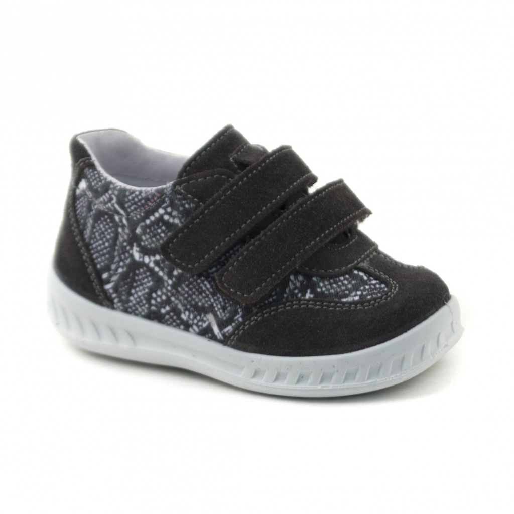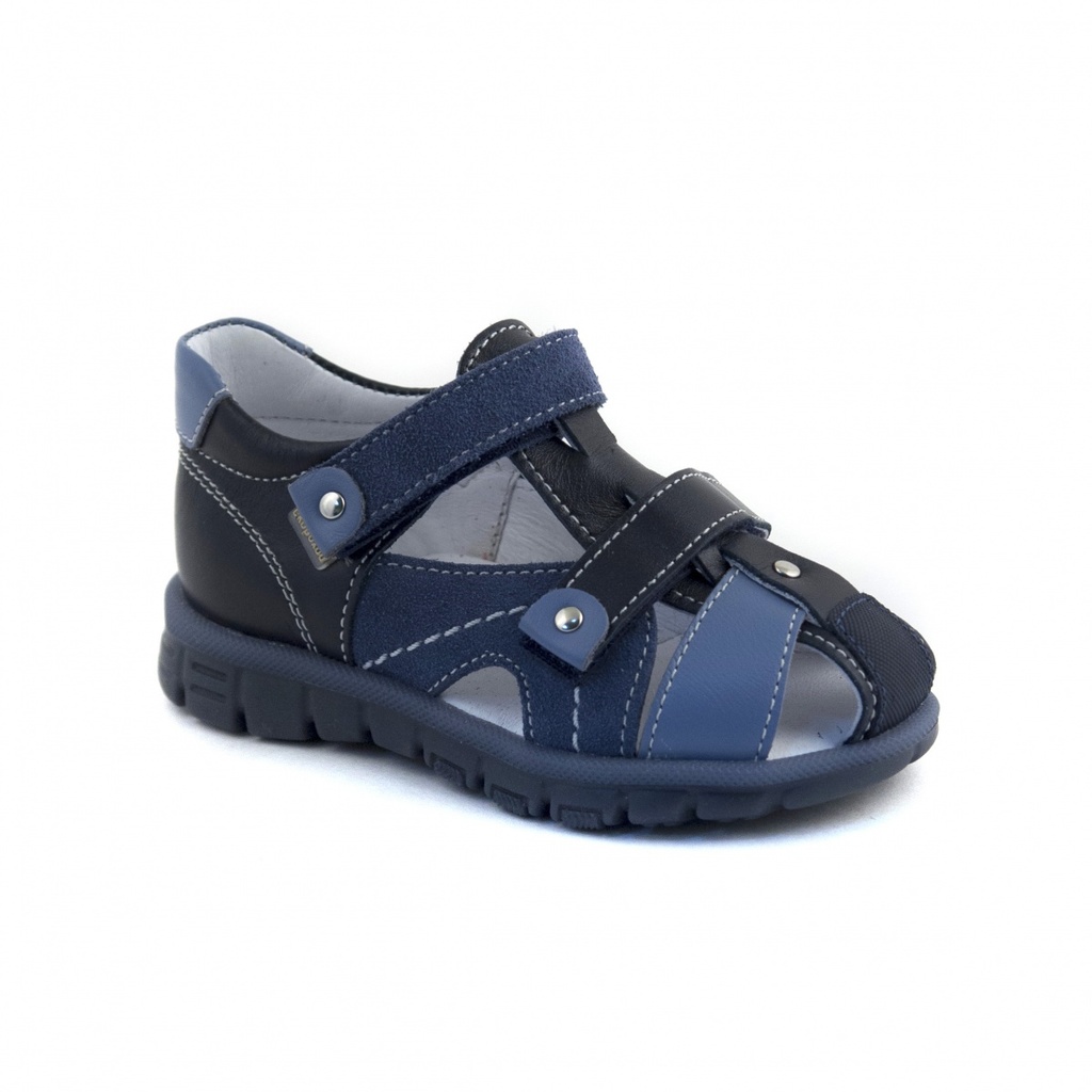 Модель в классических мальчиковых цветах. Велкро через перекидную рамку позволяют отрегулировать обувь на ножке любой полноты и подъема. Расклешенный протектор на ходовой части подошвы с зонами гибкос... Показать описаниети обеспечивает дополнительный комфорт, амортизацию и устойчивость. Кожаная стелька с умеренным подсводником из вспененного латекса. Задник с мягким кантом отлично фиксирует пяточку ребенка. Дизайн модели позволяет ножки ребенка дышать даже в жаркую погоду.