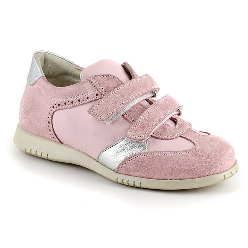 Удачное сочетание натуральных материалов - спилок- велюр и кожи в одном цветовом решение, но разных оттенках. Сочетание основного розового и серебряных вставок придают праздничность модели.Девочки осо... Показать описаниебенно выделяют этот цвет. Удобная колодка и гибкая подошва, дает хорошее сцепление с любой поверхностью. Материал подкладки: натуральная перфорированная кожа, нога ребенка легко «дышит». Ребенку удобно справляться с застежками! В этой модели удобно заниматься спортом, она будет комфортна и как сменная обувь.