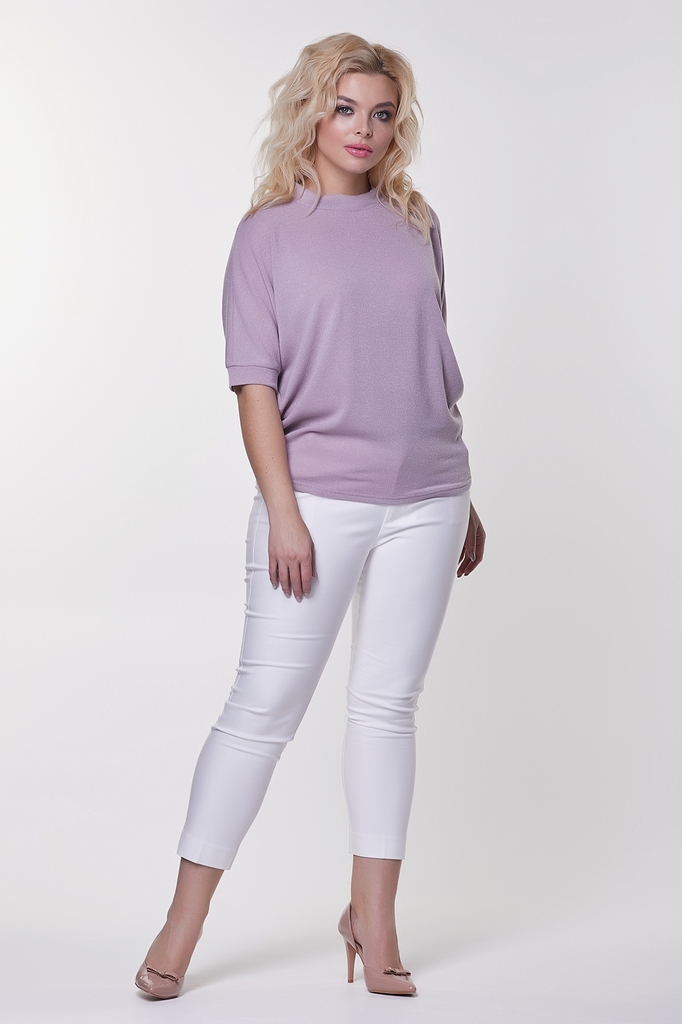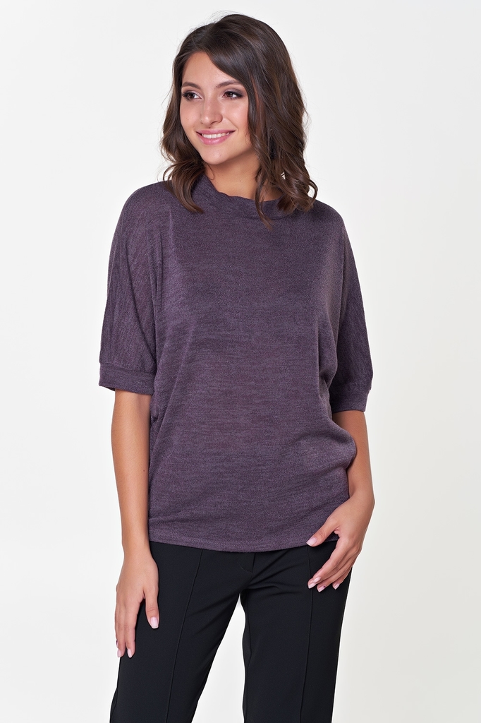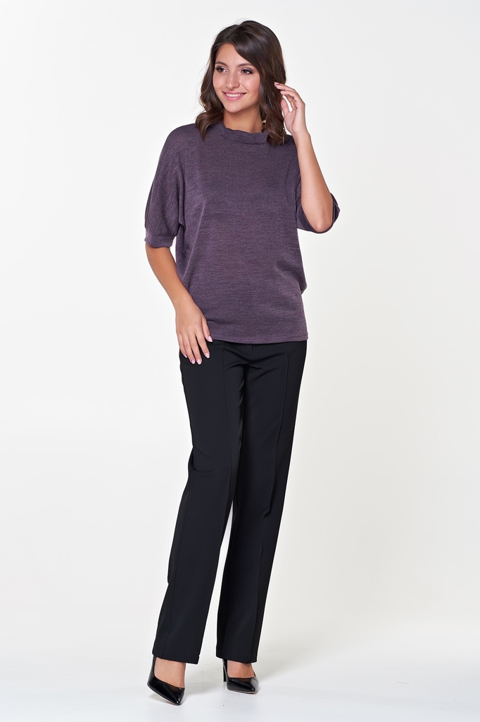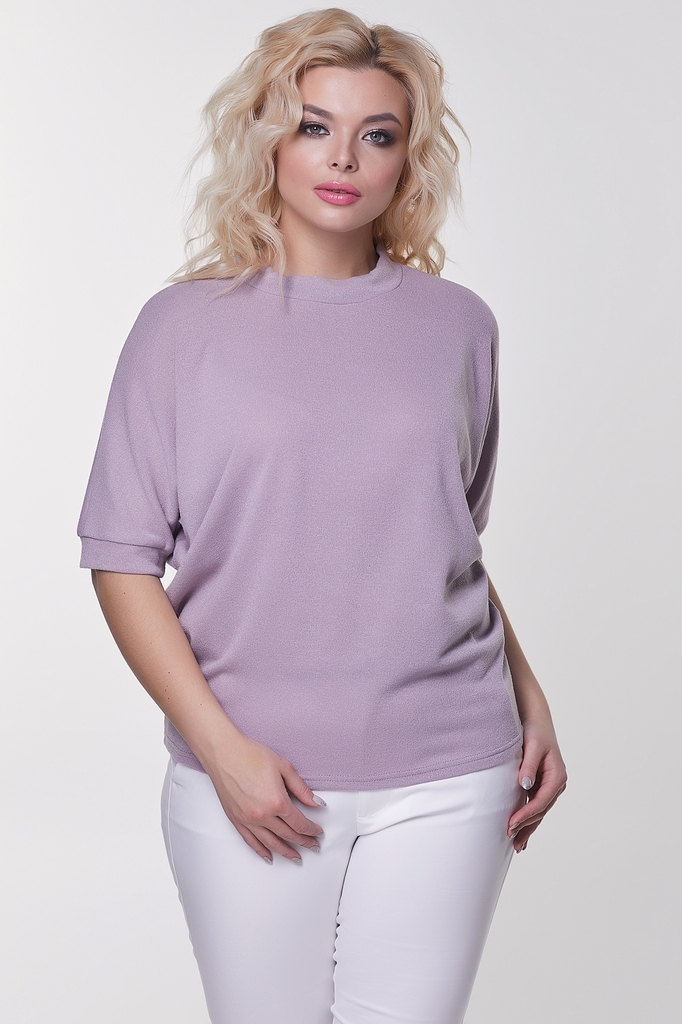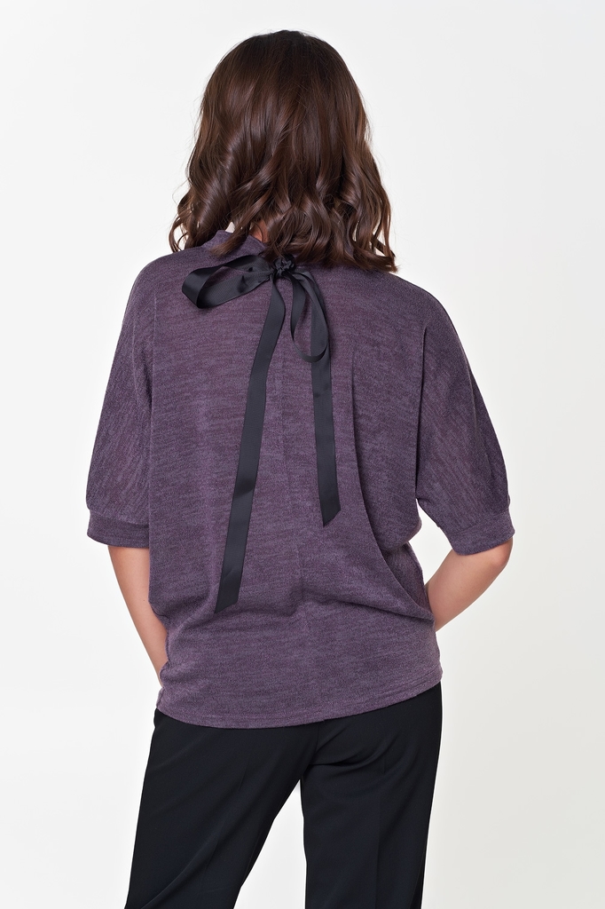 Комфортная блуза прямого силуэта из трикотажного полотна. Короткий рукав летучая мышь оканчивается манжетой. Горловина оформлена воротником стойкой, по которому пропущена репсовая лента, завязывающаяс... Показать описаниея на спинке в эффектный бант. Низ ровный, без разрезов. Блуза представлена с брюками Жанин №3 Длина изделия: 42,44,46,48р - 61см. ; 50,52р - 64см. Длина рукава от горловины: 42 см. Рост фотомодели: 172 см. Размер фотомодели: 48. Ткань: трикотаж меланж.
