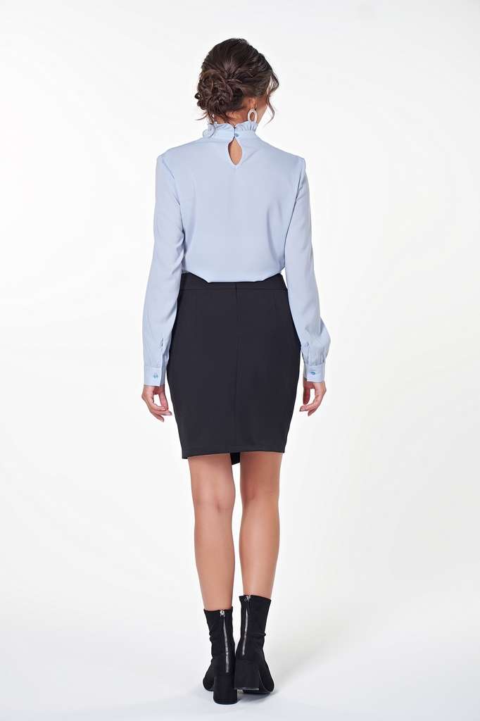 Изящная блуза прямого силуэта из однотонной блузочной ткани. Длинный втачной рукав собран на манжету с пуговицей. Воротник-стойка снизу на сборке, сверху оформлен оборкой. По спинке выполнена «капельк... Показать описаниеа» с застежкой на петлю и пуговицу. Низ ровный, без разрезов. Блуза добавит Вашему образу шарма и женственности. Блузка представлена с юбкой Аня №1 Длина изделия: 42, 44, 46р - 63см. ; 48, 50, 52р - 65 см. Длина рукава: 42, 44, 46р - 60см. ; 48, 50, 52р - 61 см. Рост фотомодели: 173 см. Размер фотомодели: 42 Ткань: Ниагара.