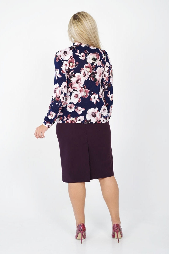Эффектная блуза прилегающего силуэта из атласного жаккарда с крупным цветочным узором. Короткие втачные рукава. Круглая горловина на внутренней обтачке. В среднем шве спинки заложена застежка на потай... Показать описаниеную молнию. Низ дополнен пышной баской. Блузка представлена с юбкой Гарсия №1 Длина изделия: 61 см. Длина рукава: 22 см. Рост фотомодели: 170 см. Размер фотомодели: 42 Ткань: жаккард-атлас.