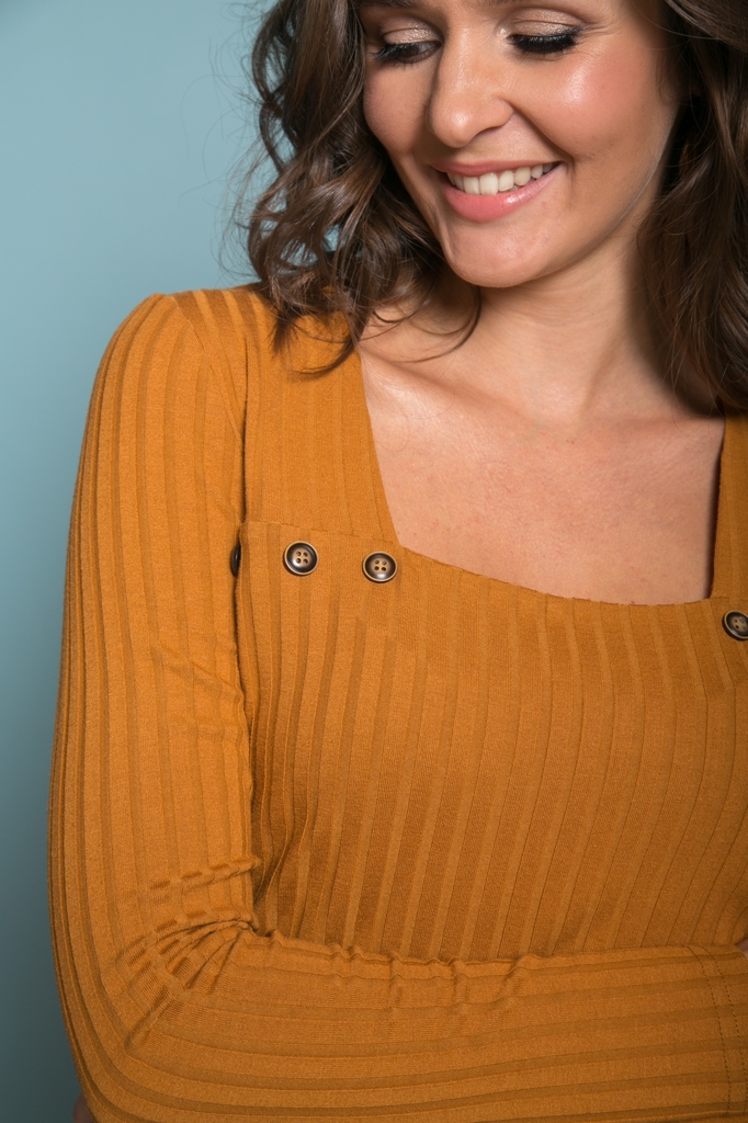 Блузка прилегающего силуэта из трикотажа с втачным рукавом. Квадратный вырез горловины декорирован пуговицами. Низ ровный, без разрезов. Блузка представлена с брюками Мейбл №2 Длина изделия: 63 с... Показать описанием. Длина рукава: 61 см. Рост фотомодели: 172 см. Размер фотомодели: 44 Ткань: Трикотаж.