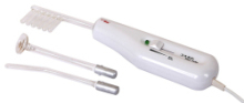Режимы работы Время работы аппарата в повторно-кратковременном режиме с цикличностью время работы, мин 30 время паузы, мин 15 Характеристики воздействия Амплитудное значение напряжения на выходе, кВ (... Показать описание0,8-25) ±10% Частота следования пачек импульсов, Гц 100±10 Частота заполнения импульсов, кГц. 110±25 Питание Напряжение питания, В 220 ±10% Частота питающей сети, Гц 50 Мощность потребляемая из сети, ВА 45 ±10% Габариты Габаритные размеры, мм. не более 40 х 60 х 200 Масса аппарата с электродами, кг не более 0,5 Дополнительно Класс защиты от поражения электрическим током II, тип В по ГОСТ Р 50267.0 Срок службы 5 лет Аппарат применяется в физиотерапии, стоматологии, косметологии.Может быть использован в клиниках, амбулаториях, косметических салонах, стоматологических кабинетах и домашних условиях. Процедуры проводят с помощью стеклянных электродов, заполненных смесью инертных газов. Стандартный набор электродов позволяет проводить следующие виды массажа: . Примечание: для профессионального пользования, помимо стандартной комплектации, возможна поставка под заказ следующих электродов: Основным лечебным фактором местной дарсонвализации является коронный разряд среднечастотного импульсного тока высокого напряжения, изменяющийся по интенсивности от тихого, практически не вызывающего субъективных ощущений, до искрового, способного оказать прижигающее действие на кожу и слизистые оболочки. Электрические разряды высокого напряжения вызывают ионизацию молекул азота и кислорода воздуха и образование вокруг электрода озона и окислов азота, которые оказывают свое дополнительное биологическое и лечебное действие при проведении процедур дарсонвализации. Большинство физиологических и лечебных эффектов дарсонвализации имеют рефлекторный характер и обусловлены раздражением нервных рецепторов поверхностных тканей (кожи и слизистых оболочек), гладкой мускулатуры артерий, артериол, прекапиллярных сфинктеров, волосяных фолликулов, сальных и потовых желез кожи, а также других клеточных и тканевых элементов кожи и слизистых оболочек в зоне воздействия. Лечебные эффекты: Показания к применению: