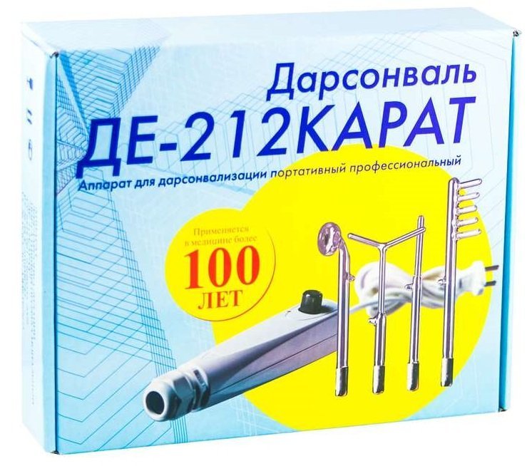 Напряжение питания (В): 220±22 Плавная регулировка мощности Масса дарсонваля с электродом (кг): 0,5 Габаритные размеры корпуса трансформатора (мм): 70х80х90 Средний срок службы, не менее (лет): 5 4 см... Показать описаниеенные насадки в комплекте Дарсонвали оптом. На нашем сайте Вы всегда можете приобрести Дарсонваль Де-212 Карат оптом в Москве. Уже много лет наша компания продает этот уникальный прибор, российского производства, который завоевал любовь врачей, косметологов, а также всех тех, кто использует Дарсонваль Карат у себя дома. Данный Дарсонваль имеет 4 насадки, чем выгодно отличается от других видов приборов для дарсонвализации. В комплект Дарсонваля Карат входят 4 основные насадки или как их еще называют электроды. Каждая насадка имеет свое назначение и применение. У нас Вы можете купить отдельно все виды насадок к Дарсонвалю Карат Де-212. Насадка расческа поможет ухаживать за волосистой частью головы. Применяется при выпадении волос, лечении облысения, лечении себореи и перхоти. Насадка грибовидная основной помощник для ухода за кожей лица, шеи, тела. Т-образная насадка или «рогатка» поможет при лечении таких заболеваний как варикозное расширение вен, болезнь спины,профилактика целлюлита. Прямая насадка или «палочка» используется для проведения кожных прижиганий в косметологии, а также для полостных процедур в медицине. Как видите,использовать Дарсонваль Карат можно в различных целях. Его любят и косметологи, и медицинские работники и все те, кто используют Дарсонваль Де212 Карат у себя дома. В инструкции к аппарату Карат Де-212 подробно описаны основные методы использование аппарата при различных заболеваниях. Имеются противопоказания к использованию. Регистрационное удостоверение РУ Карат
