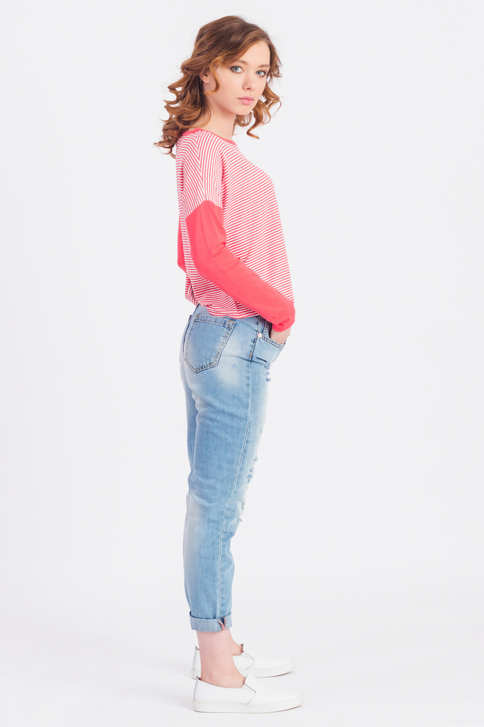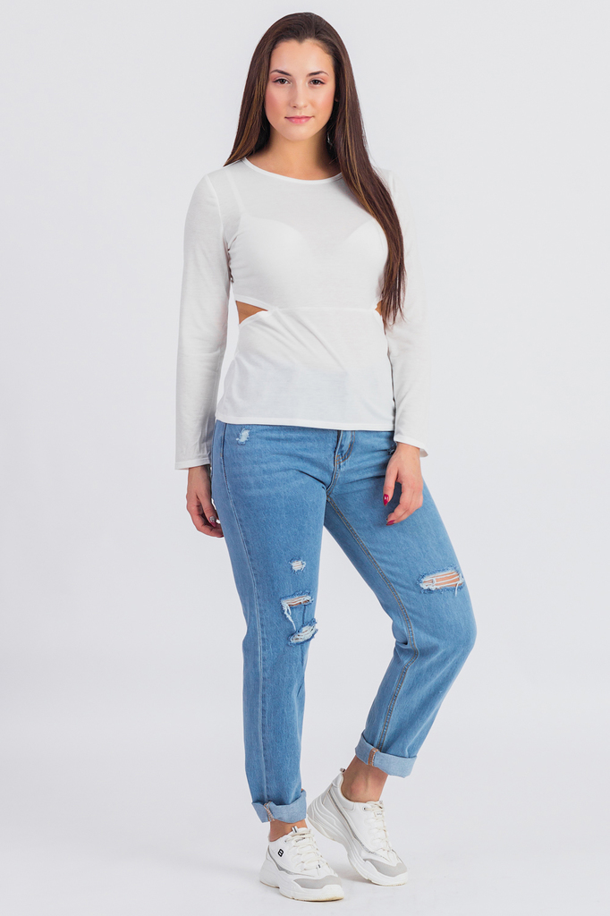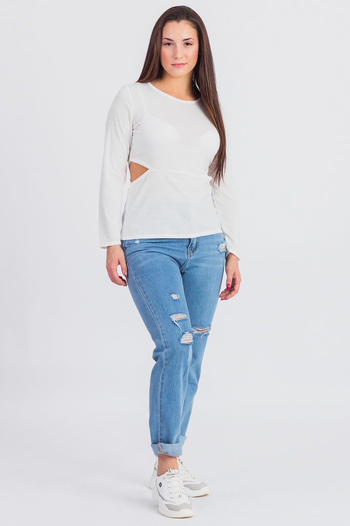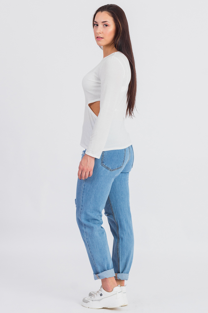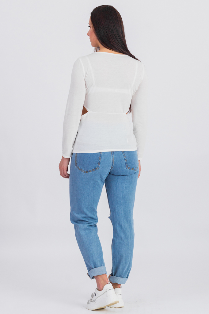 Лонгсливы можно по праву отнести в разряд универсальной одежды. Их можно носить с брюками и шортами, с джинсами и юбками. Лонгслив приталенного силуэта, отрезной по линии талии с фигурными вырезами по... Показать описание бокам. Горловина окантована. Рукав втачной, длинный. Цвет: белый. Длина рукава - 60 ± 1 см. Длина изделия - 57 ± 2 см. Параметры девушки-фотомодели: Рост - 169 см. Размер - 46 Обхват груди - 92 см. ± 1 см. Обхват талии - 70 см. ± 1 см. Обхват бёдер - 102 см. ± 1 см.