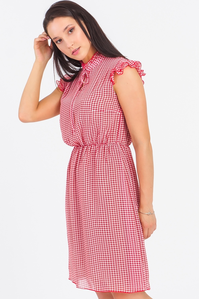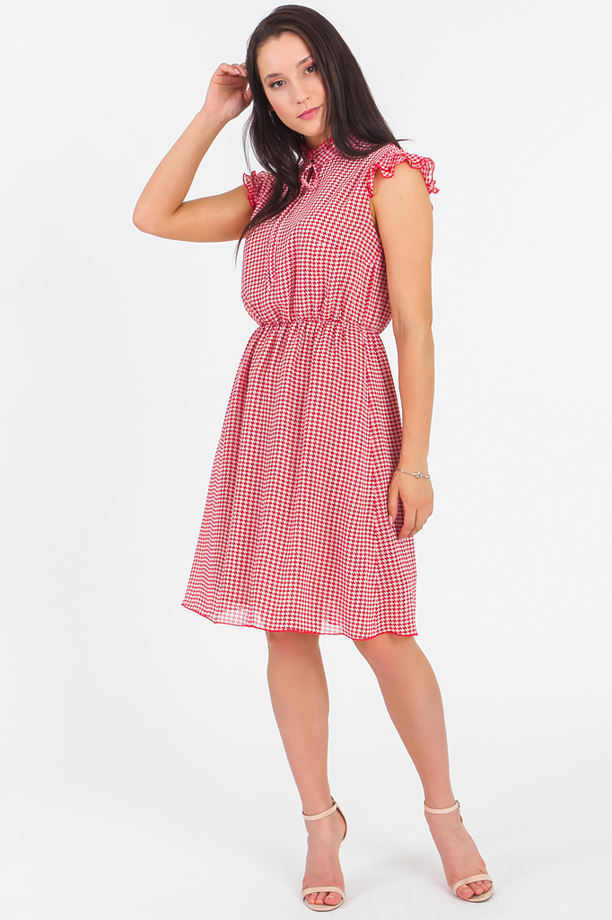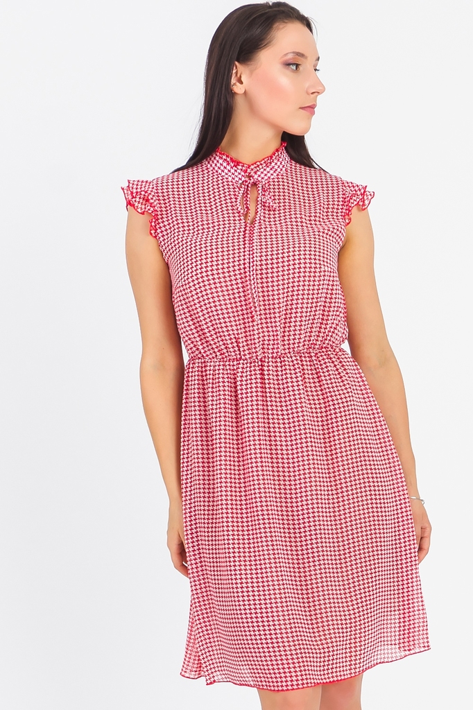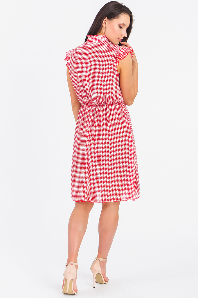 Легкое изящное платье - идеальный выбор для летних дней! В таком игривом платье Вы не останетесь незамеченной! Платье приталенного силуэта, отрезное по линии талии с резинкой. Платье на подкладе. На с... Показать описаниепинке средний шов. Воротник "стойка" с рюшей, на передней части с капелькой и шнурком. Рукава крылышки из двойных рюшей. Проймы обработаны подкладом. В изделии использованы цвета: белый, красный. Длина изделия: 46 размер - 97 ± 2 см. 48 размер - 97 ± 2 см. 50 размер - 97 ± 2 см. 52 размер - 97 ± 2 см. 54 размер - 99 ± 2 см. 56 размер - 99 ± 2 см. 58 размер - 99 ± 2 см. Параметры девушки-фотомодели: Рост - 169 см. Размер - 46 Обхват груди - 92 см. ± 1 см. Обхват талии - 70 см. ± 1 см. Обхват бёдер - 102 см. ± 1 см.
