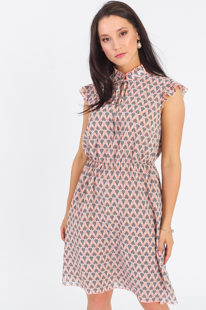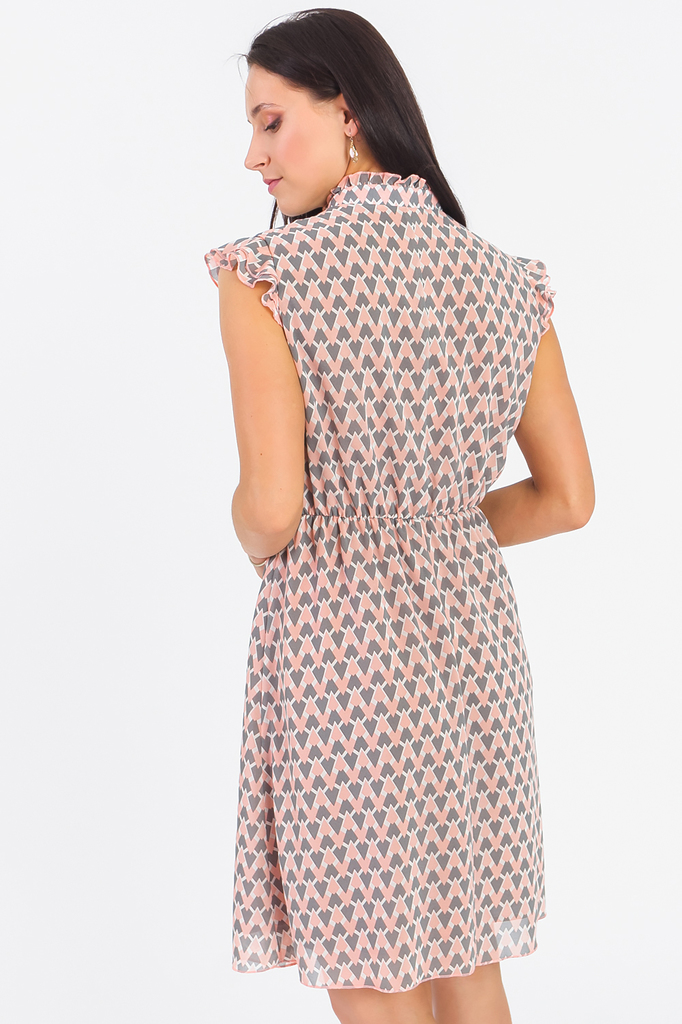 Легкое изящное платье - идеальный выбор для летних дней! В таком игривом платье Вы не останетесь незамеченной! Платье приталенного силуэта, отрезное по линии талии с резинкой. Платье на подкладе. На с... Показать описаниепинке средний шов. Воротник "стойка" с рюшей, на передней части с капелькой и шнурком. Рукава крылышки из двойных рюшей. Проймы обработаны подкладом. В изделии использованы цвета: серый и др. Длина изделия: 46 размер - 97 ± 2 см. 48 размер - 97 ± 2 см. 50 размер - 97 ± 2 см. 52 размер - 97 ± 2 см. 54 размер - 99 ± 2 см. 56 размер - 99 ± 2 см. 58 размер - 99 ± 2 см. Параметры девушки-фотомодели: Рост - 169 см. Размер - 46 Обхват груди - 92 см. ± 1 см. Обхват талии - 70 см. ± 1 см. Обхват бёдер - 102 см. ± 1 см.