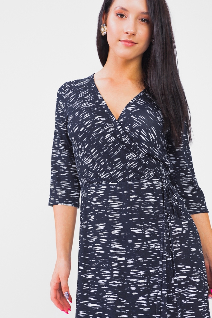 Просьба учесть, ткань изделия красится. Для закрепления красителя ткани у платья советуем постирать его в слабом растворе уксуса или поваренной соли. Красота - в естественности и простоте. Дополните п... Показать описаниелатье яркими аксессуарами и стильный образ готов! Платье приталенного силуэта, отрезное по линии талии с резинкой. На передней части изделия лиф и юбка на "запах" с декоративным шнурком. На спинке средний шов. Горловина окантована. Рукав втачной, 3/4. В изделии использованы цвета: темно-синий, белый. Длина рукава - 41 ± 1 см. Длина изделия: 46 размер - 91 ± 2 см. 48 размер - 91 ± 2 см. 50 размер - 91 ± 2 см. 52 размер - 91 ± 2 см. 54 размер - 93 ± 2 см. 56 размер - 93 ± 2 см. 58 размер - 93 ± 2 см. Параметры девушки-фотомодели: Рост - 169 см. Размер - 46 Обхват груди - 92 см. ± 1 см. Обхват талии - 70 см. ± 1 см. Обхват бёдер - 102 см. ± 1 см.
