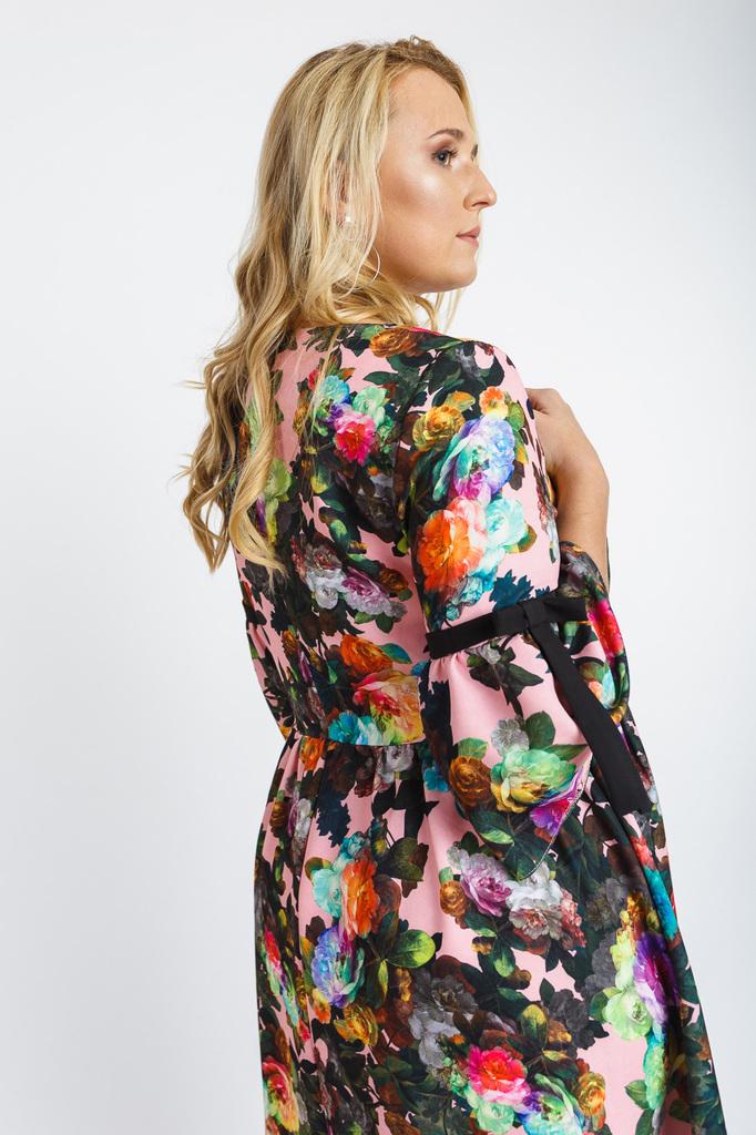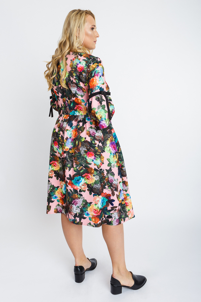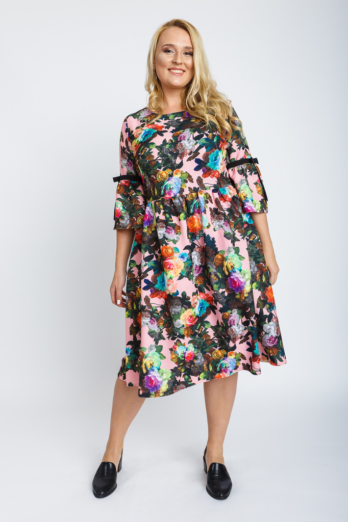 Это очаровательное платье придаст гардеробу новое дыхание! Благодаря лаконичному фасону, эта модель легко подойдет к другим предметам гардероба и позволит создавать стильные образы. Платье приталенног... Показать описаниео силуэта, отрезное по линии талии. Юбка со сборкой. На спинке средний шов. Молния в боковом шве. Горловина обработана обтачкой. Рукав втачной, 3/4, с широким воланом по низу и декоративным бантом. В изделии использованы цвета: розовый, зеленый, темно-синий и др. Длина рукава - 42 ± 1 см. Длина изделия: 46 размер - 99 ± 2 см. 48 размер - 99 ± 2 см. 50 размер - 99 ± 2 см. 52 размер - 103 ± 2 см. 54 размер - 106 ± 2 см. 56 размер - 106 ± 2 см. 58 размер - 106 ± 2 см. Параметры девушки-фотомодели: Рост - 170 см. Размер - 52 Обхват груди - 102 ± 1 см. Обхват талии - 82 ± 1 см. Обхват бёдер - 118 ± 1 см.