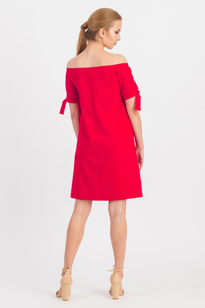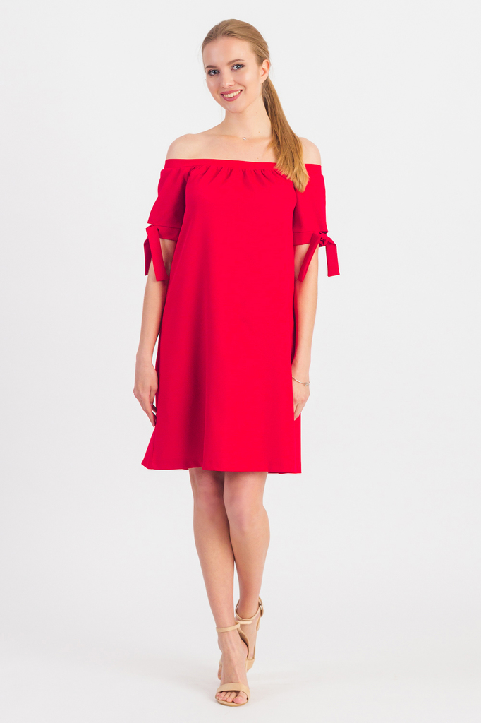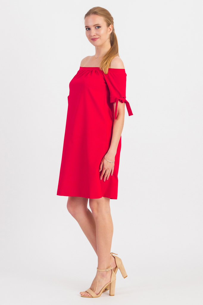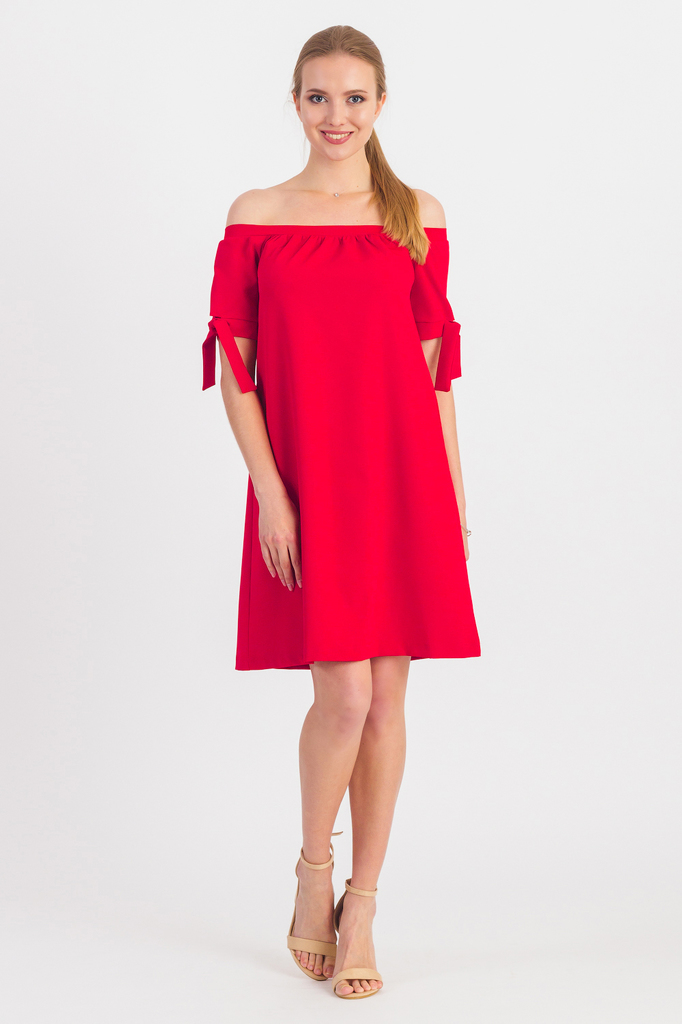 Этот необычный элемент гардероба не оставит Вас без внимания противоположного пола! Платье силуэта "трапеция" с открытыми плечами. На спинке средний шов. Верхний срез обработан планкой. Рукав втачной,... Показать описание короткий, с усеченным окатом, по низу манжет с завязками. Цвет: красный. Длина рукава (от конечной плечевой точки) - 25 ± 1 см. Длина изделия (от 7-го шейного позвонка): 40 размер - 94 ± 2 см. 42 размер - 94 ± 2 см. 44 размер - 94 ± 2 см. 46 размер - 94 ± 2 см. 48 размер - 98 ± 2 см. 50 размер - 98 ± 2 см. 52 размер - 94 ± 2 см. Параметры девушки-фотомодели: Рост - 170 см. Размер - 42 Обхват груди - 84 ± 1 см. Обхват талии - 66 ± 1 см. Обхват бёдер - 90 ± 1 см. Длина переда до талии - 43 ± 1 см. Длина спины до талии - 45 ± 1 см. Длина руки - 60 ± 1 см.