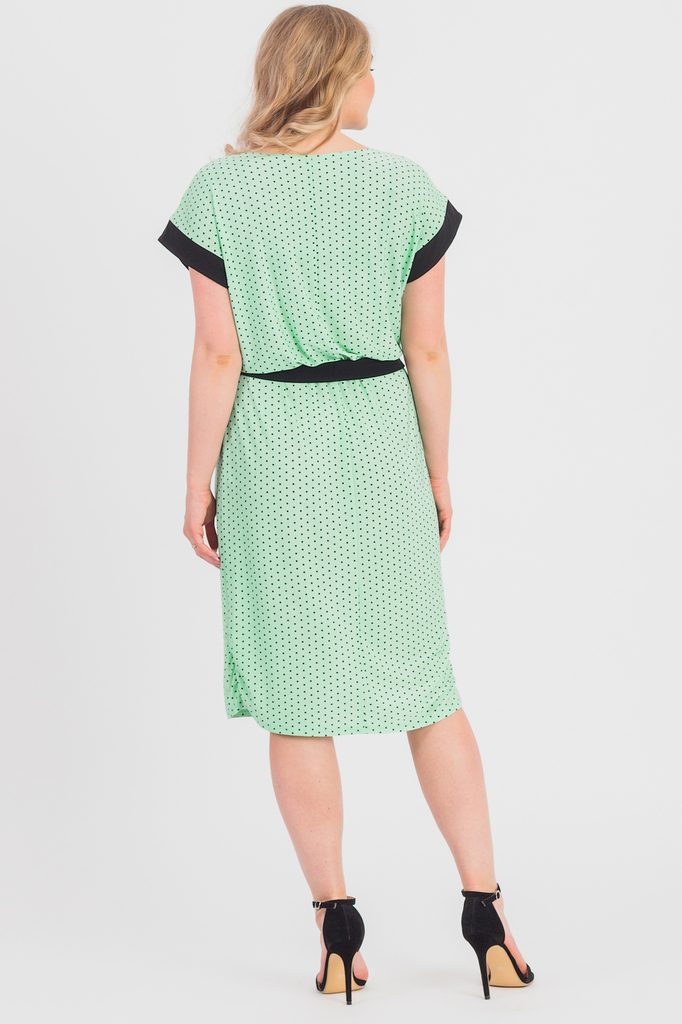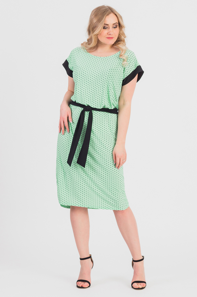 Это очаровательное летнее платье станет изумительным вариантом повседневного или выходного наряда. Нежный принт украсит любую леди. Изумительно садясь по фигуре, это платье маскирует ее проблемные зон... Показать описаниеы. Платье прямого силуэта, отрезное по линии талии с резинкой и съемным поясом. На спинке средний шов. По боковым швам сборка на резинку. Горловина "лодочка". Рукав цельнокроенный, короткий, обработан двойными обтачками. В изделии использованы цвета: нежная мята, черный Длина рукава (от конечной плечевой точки) - 12 ± 1 см. Длина изделия: 46 размер - 109 ± 2 см. 48 размер - 109 ± 2 см. 50 размер - 109 ± 2 см. 52 размер - 109 ± 2 см. 54 размер - 111 ± 2 см. 56 размер - 111 ± 2 см. 58 размер - 111 ± 2 см. Параметры девушки-фотомодели: Рост - 168 см. Размер - 48 Обхват груди - 97 ± 1 см. Обхват талии - 77 ± 1 см. Обхват бёдер - 104 ± 1 см. Длина переда до талии - 48 ± 1 см. Длина спины до талии - 40 ± 1 см. Длина руки - 60 ± 1 см.