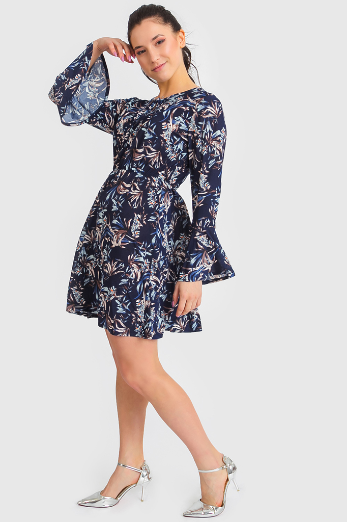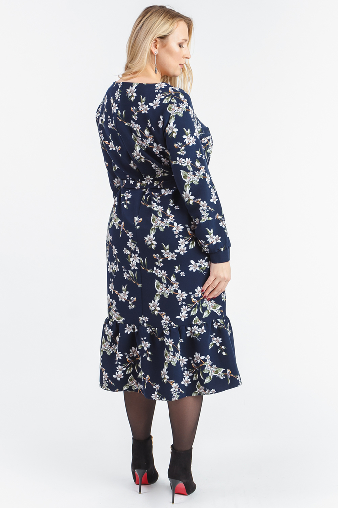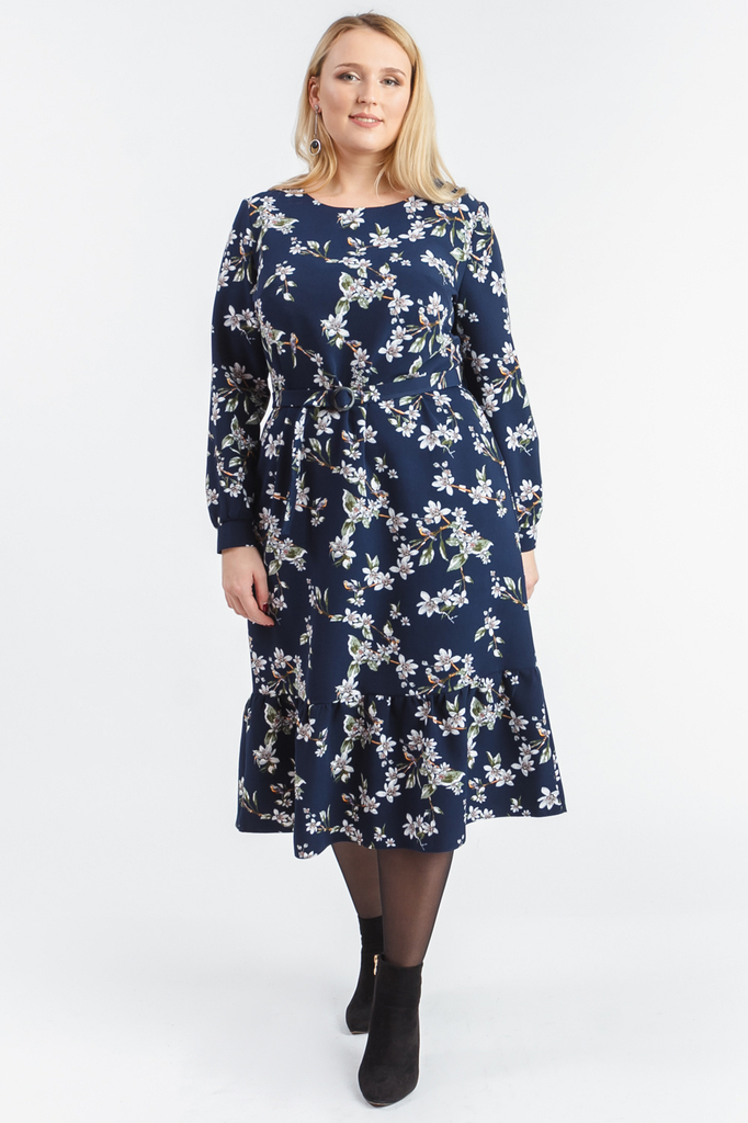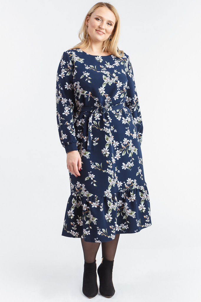 Это очаровательное платье придаст гардеробу новое дыхание! Благодаря лаконичному фасону, эта модель легко подойдет к другим предметам гардероба и позволит создавать стильные образы. Платье полуприлега... Показать описаниеющего силуэта со съемным поясом с пряжкой. По низу широкий волан. На спинке средний шов. Горловина обработана обтачкой. Рукав втачной, длинный, по низу манжета с застежкой на пуговицу. В изделии использованы цвета: темно-синий и др. Длина рукава - 60 ± 1 см. Длина изделия - 116 ± 2 см. Параметры девушки-фотомодели: Рост - 170 см. Размер - 52 Обхват груди - 102 ± 1 см. Обхват талии - 82 ± 1 см. Обхват бёдер - 118 ± 1 см.
