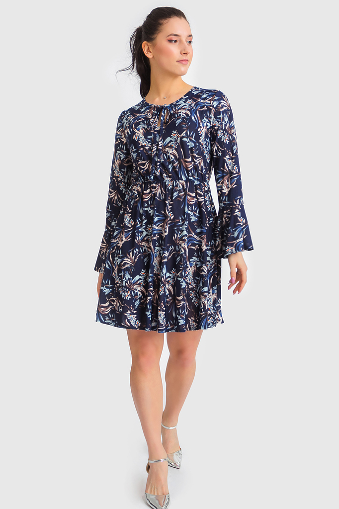 Если Вы решили обновить свой гардероб, Вы обязательно должны приобрести это милое трикотажное платье. Платье изменит Ваш повседневный образ и подарит легкое весеннее настроение! Платье приталенного си... Показать описаниелуэта, отрезное чуть выше линии талии с резинкой. На спинке средний шов. Горловина окантована с капелькой и завязками на передней части изделия. Рукав втачной, длинный, с воланами по низу. В изделии использованы цвета: темно-синий, коричневый, голубой и др. Длина рукава - 61 ± 1 см. Длина изделия: 46 размер - 85 ± 2 см. 48 размер - 85 ± 2 см. 50 размер - 85 ± 2 см. 52 размер - 85 ± 2 см. 54 размер - 88 ± 2 см. 56 размер - 88 ± 2 см. 58 размер - 88 ± 2 см. Параметры девушки-фотомодели: Рост - 169 см. Размер - 46 Обхват груди - 92 см. ± 1 см. Обхват талии - 70 см. ± 1 см. Обхват бёдер - 102 см. ± 1 см.