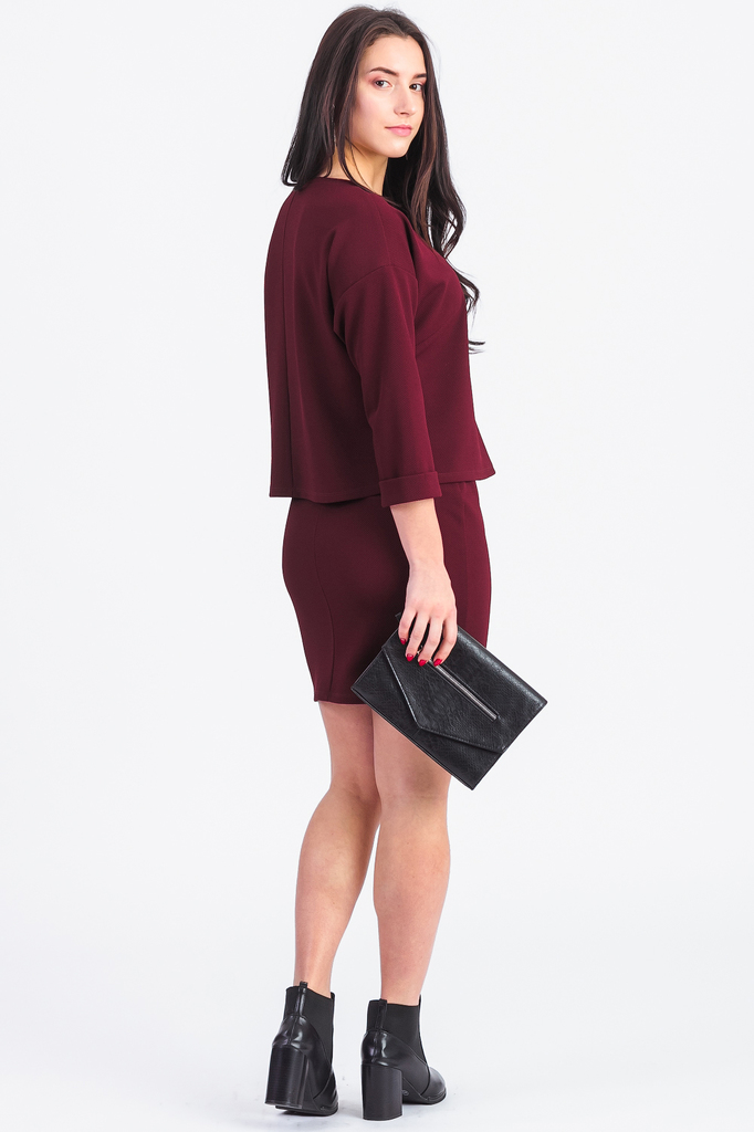 Стильный костюм, включающий юбку и джемпер, украсит Ваш силуэт и придаст женственность Вашему образу. Костюм: юбка и джемпер. Джемпер прямого силуэта. На спинке средний шов. Горловина "лодочка". Рукав... Показать описание рубашечный, 3/4, со спущенной линией плеча и манжетой на отворот. Юбка - "карандаш" со средним швом и молнией на спинке. Верхний срез обработан обтачкой. В изделии использованы цвета: бордовый. Длина рукава (от конечной плечевой точки) - 45 ± 1 см. Длина джемпера: 46 размер - 50 ± 2 см. 48 размер - 50 ± 2 см. 50 размер - 50 ± 2 см. 52 размер - 50 ± 2 см. 54 размер - 51 ± 2 см. 56 размер - 51 ± 2 см. 58 размер - 51 ± 2 см. Длина юбки: 46 размер - 45 ± 2 см. 48 размер - 45 ± 2 см. 50 размер - 45 ± 2 см. 52 размер - 45 ± 2 см. 54 размер - 47 ± 2 см. 56 размер - 47 ± 2 см. 58 размер - 47 ± 2 см. Параметры девушки-фотомодели: Рост - 169 см. Размер - 46 Обхват груди - 92 см. ± 1 см. Обхват талии - 70 см. ± 1 см. Обхват бёдер - 102 см. ± 1 см.