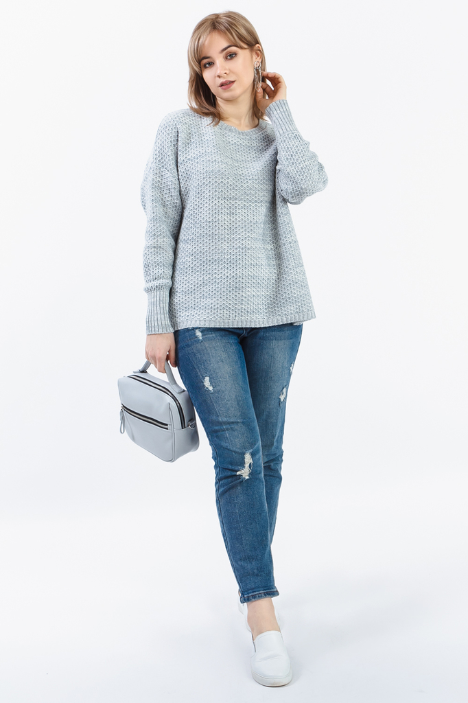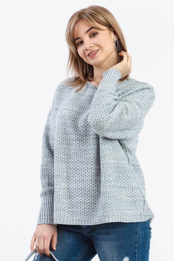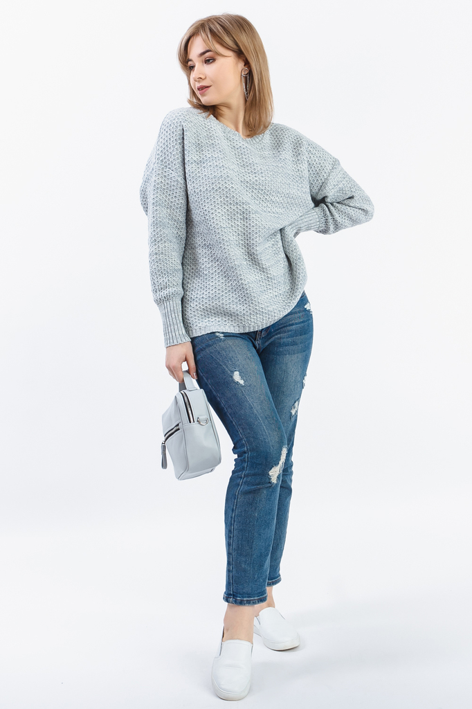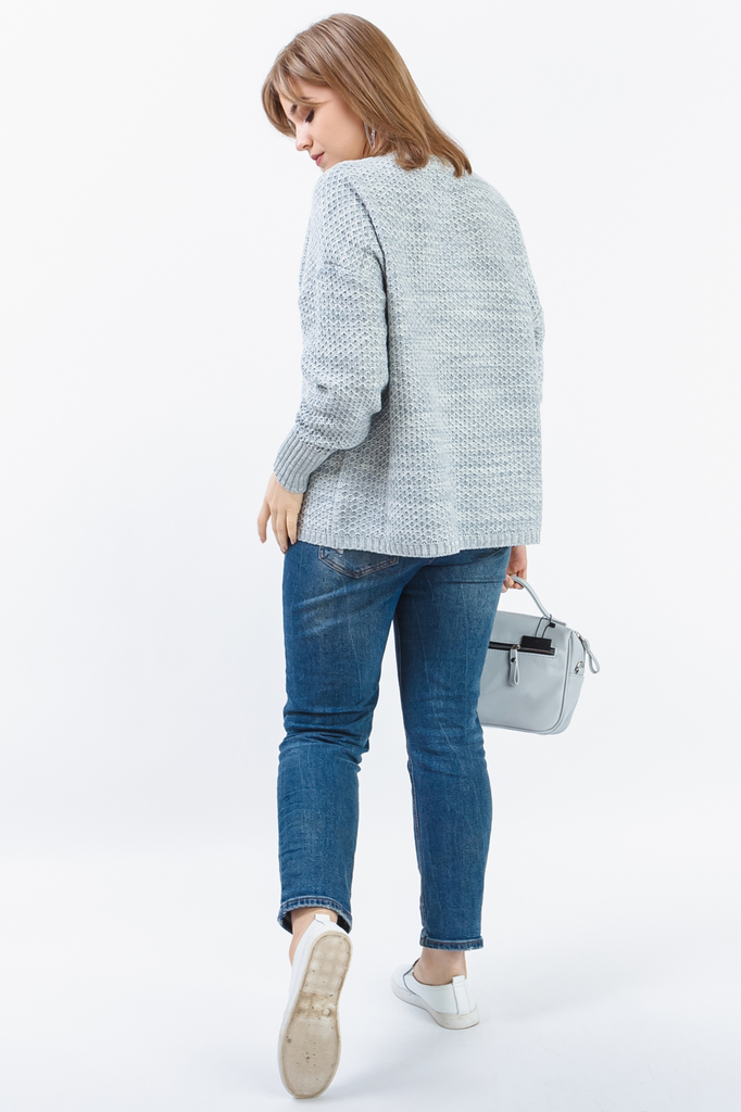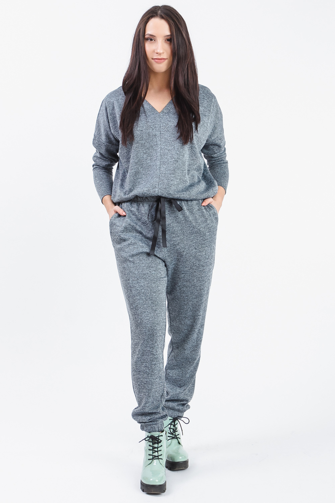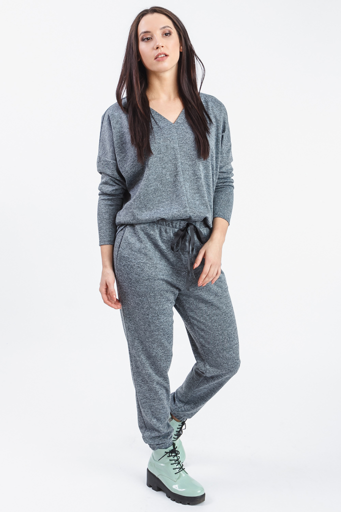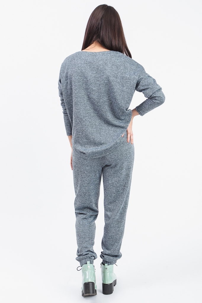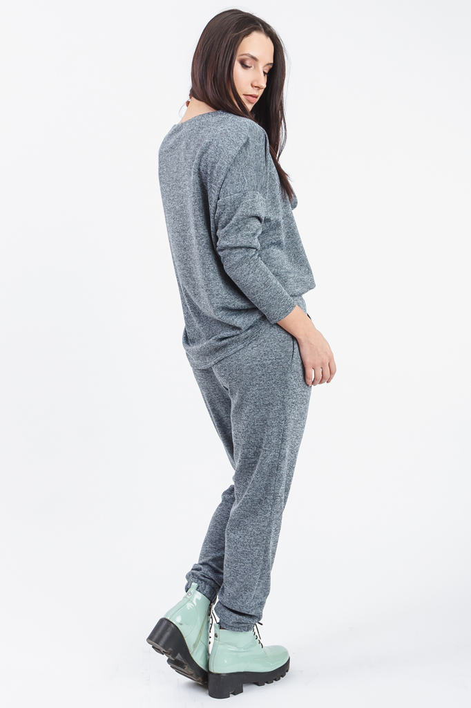 Трикотажный костюм в спортивном стиле. Отличный выбор для повседневного гардероба или активного отдыха. Костюм: брюки и джемпер. Джемпер прямого силуэта, оверсайз, средний шов на спинке. V-образная го... Показать описаниерловина, обработана обтачкой. Рукава со спущенной линией плеча, длинные, слегка заходящие на кисть. Брюки-джоггеры, свободные. Притачной пояс на резинке. Боковые карманы. Низ брюк обработан манжетами, собранными на резинку. В изделии использованы цвета: голубой с оттенком серого. Длина рукава - 61 ± 1 см. Длина джемпера - 65 ± 2 см. Длина брюк (вместе с поясом) - 103 ± 2 см. Параметры девушки-фотомодели: Рост - 169 см. Размер - 46 Обхват груди - 92 ± 1 см. Обхват талии - 70 ± 1 см. Обхват бёдер - 102 ± 1 см. Длина переда до талии – 42,5 ± 1 см. Длина спины до талии - 40 ± 1 см. Длина руки - 59 ± 1 см.