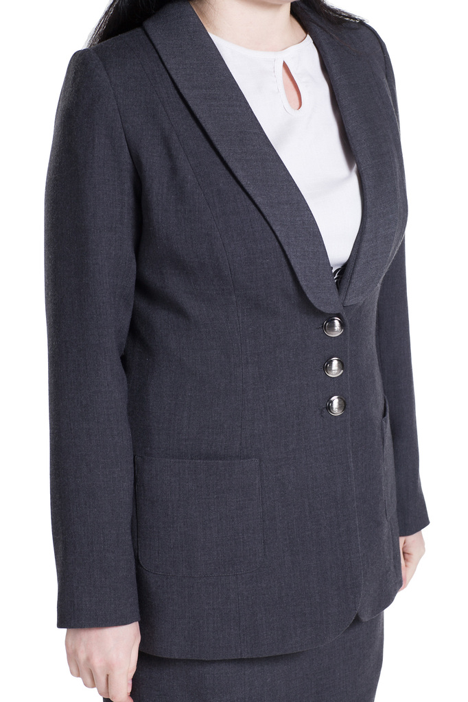Блейзер полуприлегающего силуэта удлиненный на подкладе. Шалевый воротник, застежка на три пуговицы. Карманы накладные рельефы на переде и спинке из плеча. На спине средний шов и шлица. Длина рукава -... Показать описание 61 см. Длина изделия: 42 размер - 69 см. 44 размер - 69,5 см. 46 размер - 70 см. 48 размер - 70,5 см. 50 размер - 71 см. 52 размер - 71,5 см.