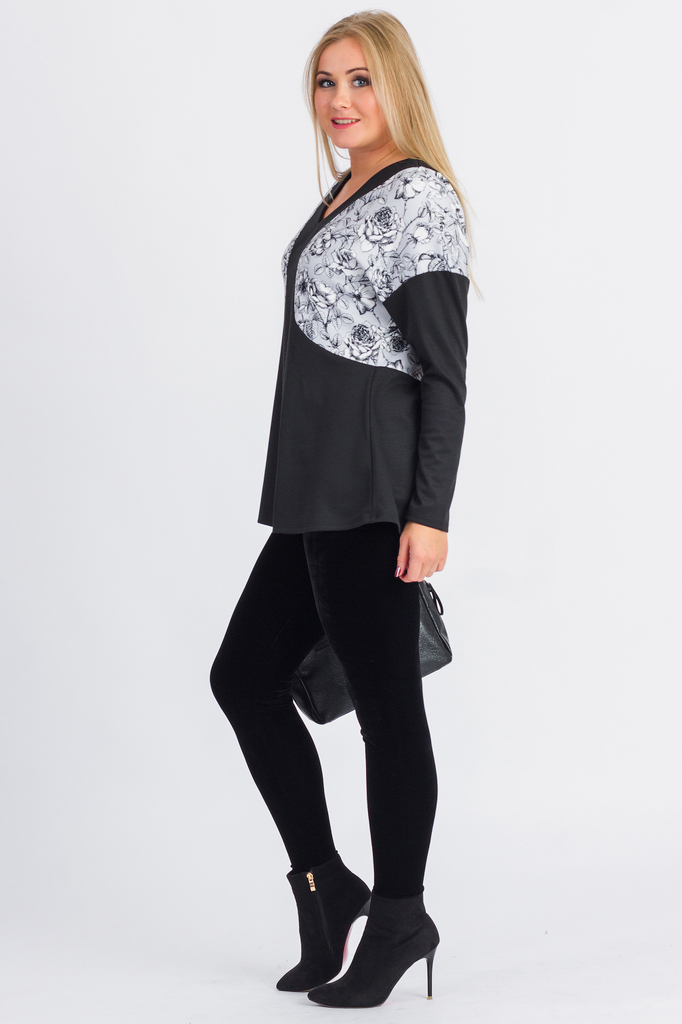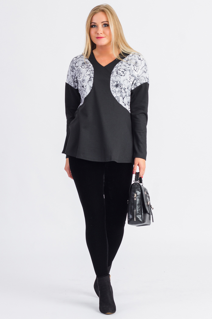Блузка женская полуприлегающего силуэта. Горловина изделия округлой формы обработана двойными обтачками. Пройма изделия также обработана фигурными двойными обтачками. Низ изделия фигурный. Длина издел... Показать описаниеия чуть ниже линии бедер. Длина изделия: 42 размер - 65 ± 1 см. 44 размер - 65 ± 1 см. 46 размер - 65 ± 1 см. 48 размер - 65 ± 1 см. 50 размер - 65 ± 1 см. 52 размер - 65 ± 1 см. 54 размер - 65 ± 1 см. 56 размер - 65 ± 1 см. 58 размер - 65 ± 1 см. 60 размер - 65 ± 1 см.