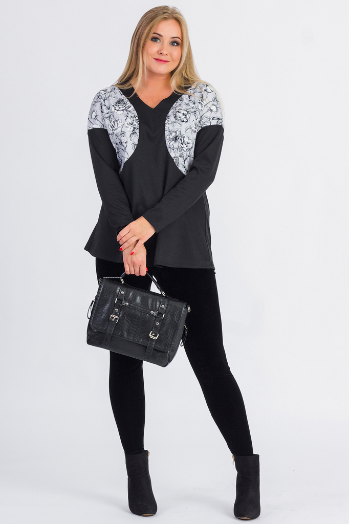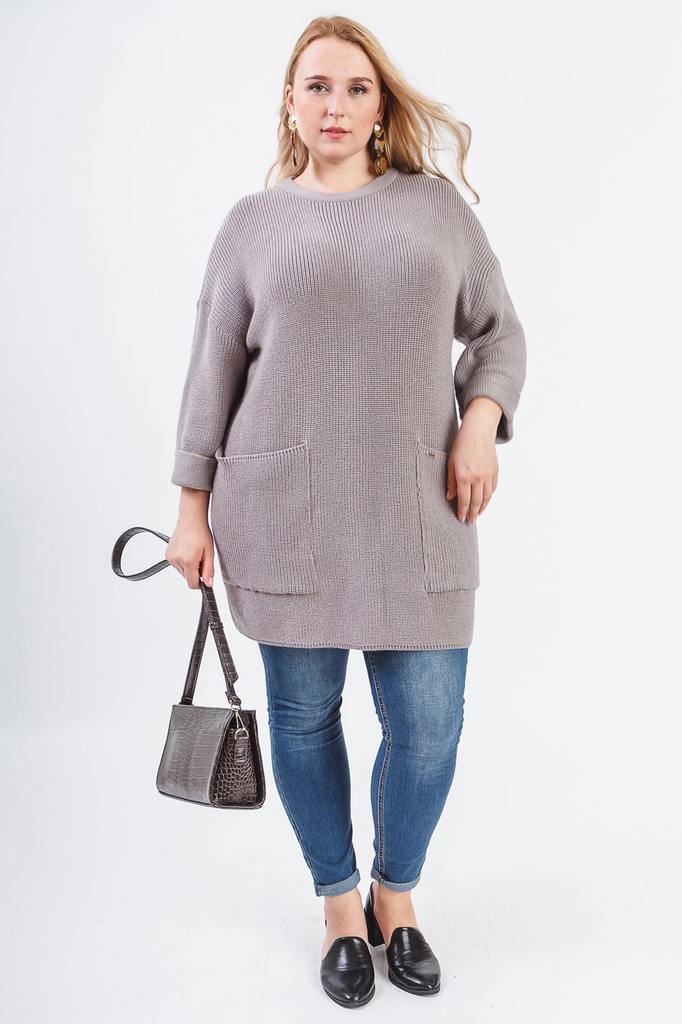 Женская туника на каждый день. Модель выполнена из пряжи. Изделие будет прекрасно сочетаться с леггинсами, лосинами, зауженными брючками. Туника свободного прямого силуэта. Горловина округлая, обработ... Показать описаниеана бейкой. На переде накладные карманы. Рукава со спущенной линией плеча, широкие, низ обработан манжетой - отвором. Бейка горловины и манжеты выполнены отделочной вязкой. В изделии использованы цвета: серый. Длина рукава (от конечной плечевой точки) - 46 ± 1 см. Длина изделия - 82 ± 2 см. При создании образа, который Вы видите на фотографии, также была использована сумка арт.SMK5319. Для просмотра модели введите артикул в строке поиска. Параметры девушки-фотомодели: Рост - 170 см. Размер – 52-54 Обхват груди - 106 ± 1 см. Обхват талии - 86 ± 1 см. Обхват бёдер - 119 ± 1 см. Длина переда до талии – 52 ± 1 см. Длина спины до талии - 40 ± 1 см.