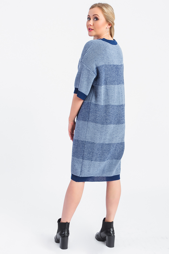 Универсальное платье с рукавами до локтя. Модель выполнена из пряжи. Вязаные изделия - это красота, тепло и комфорт. В вязаных вещах очень легко оставаться женственной и в то же время не замёрзнуть. П... Показать описаниелатье прямого силуэта, оверсайз. Горловина круглая, обработана бейкой. Рукав рубашечный, до локтя, со спущенной линией плеча. В изделии использованы цвета: синий и др. Длина рукава (от конечной плечевой точки) - 34 ± 1 см. Длина изделия - 95 ± 2 см. Параметры девушки-фотомодели: Рост - 168 см. Размер - 48 Обхват груди - 97 ± 1 см. Обхват талии - 77 ± 1 см. Обхват бёдер - 104 ± 1 см. Длина переда до талии - 48 ± 1 см. Длина спины до талии - 40 ± 1 см. Длина руки - 60 ± 1