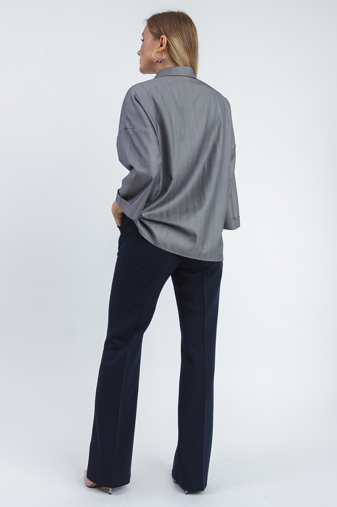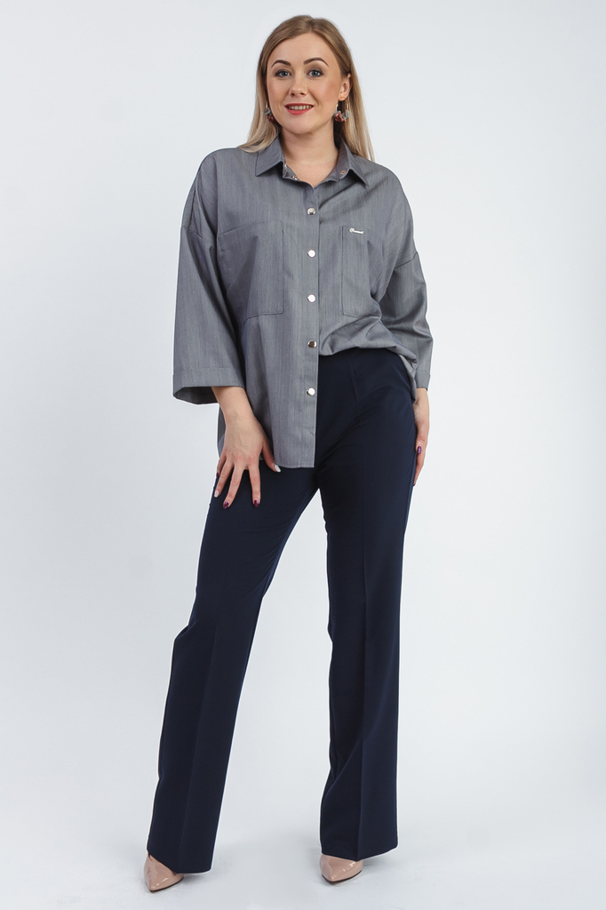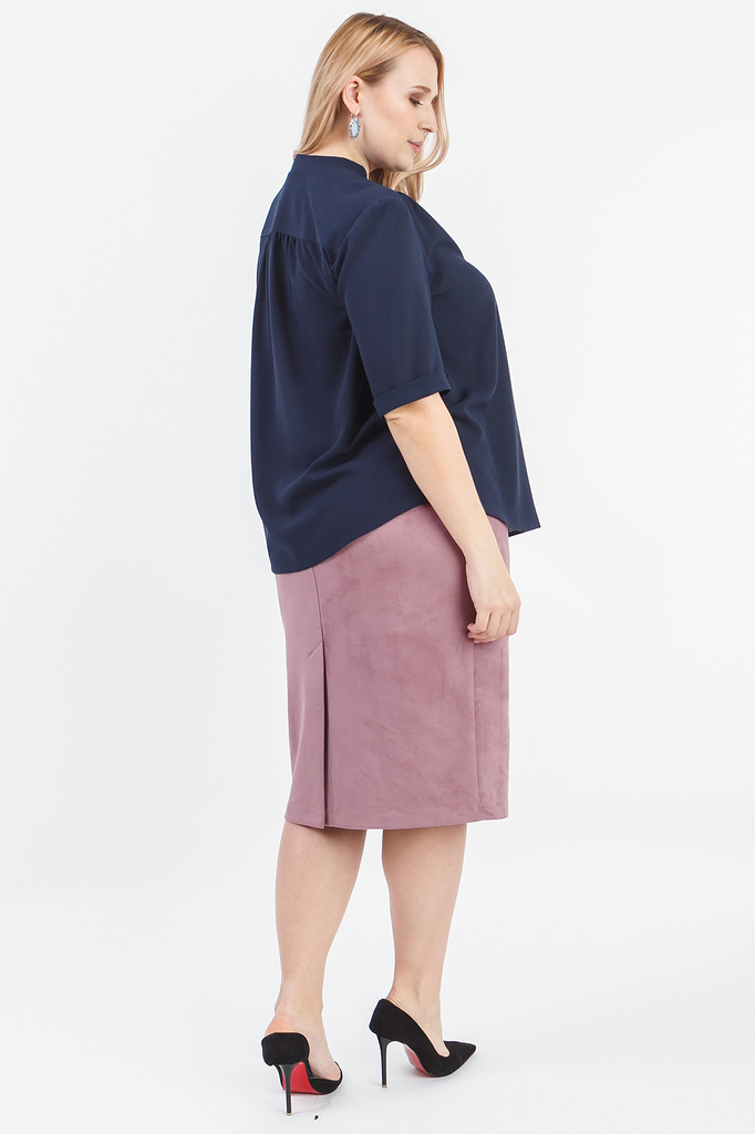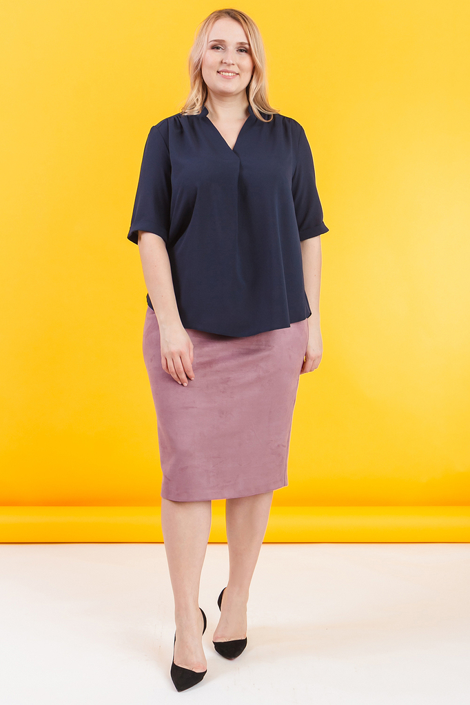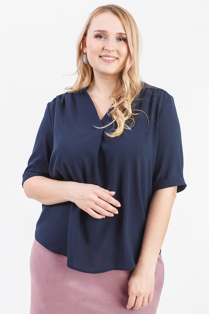 Классическая женская блузка - это универсальный предмет одежды, в котором можно пойти как на работу, так и на свидание. Блузка прямого силуэта. На передней части изделия по центру заложена складка, см... Показать описание.ещенный плечевой шов со сборкой. На спинке кокетка со сборкой. Горловина обработана обтачкой, воротник "стойка". Рукав втачной, до локтя, с манжетой на отворот. В изделии использованы цвета: темно-синий. Длина рукава - 32 ± 1 см. Длина изделия: 46 размер - 65 ± 2 см. 48 размер - 65 ± 2 см. 50 размер - 65 ± 2 см. 52 размер - 65 ± 2 см. 54 размер - 67 ± 2 см. 56 размер - 67 ± 2 см. 58 размер - 67 ± 2 см. При создании образа, который Вы видите на фотографии, также была использована замшевая юбка арт.U0517. Для просмотра модели введите артикул в строке поиска. Параметры девушки-фотомодели: Рост - 170 см. Размер – 52-54 Обхват груди - 106 ± 1 см. Обхват талии - 86 ± 1 см. Обхват бёдер - 119 ± 1 см. Длина переда до талии – 52 ± 1 см. Длина спины до талии - 40 ± 1 см.