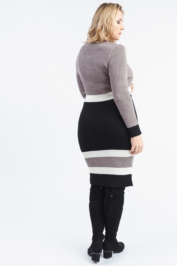 Лаконичное женское платье с длинными рукавами. Модель выполнена из пряжи. Вязаные изделия - это красота, тепло и комфорт. В вязаных вещах очень легко оставаться женственной и в то же время не замёрзну... Показать описаниеть. Платье - "резинка" приталенного силуэта. Горловина V-образная обработана бейкой. Рукав втачной, длинный. В изделии использованы цвета: серо-бежевый, черный, молочный. Длина рукава - 61 ± 1 см. Длина изделия - 106 ± 2 см. При создании образа, который Вы видите на фотографии, также была использована сумка арт.SMK5319. Для просмотра модели введите артикул в строке поиска. Параметры девушки-фотомодели (на первых двух фото): Рост - 168 см. Размер - 48 Обхват груди - 97 ± 1 см. Обхват талии - 77 ± 1 см. Обхват бёдер - 104 ± 1 см. Длина переда до талии - 48 ± 1 см. Длина спины до талии - 40 ± 1 см. Длина руки - 60 ± 1 см. Параметры девушки-фотомодели (на последующих фото): Рост - 170 см. Размер - 52-54 Обхват груди - 106 ± 1 см. Обхват талии - 86 ± 1 см. Обхват бёдер - 119 ± 1 см. Длина переда до талии - 52 ± 1 см. Длина спины до талии - 40 ± 1 см.