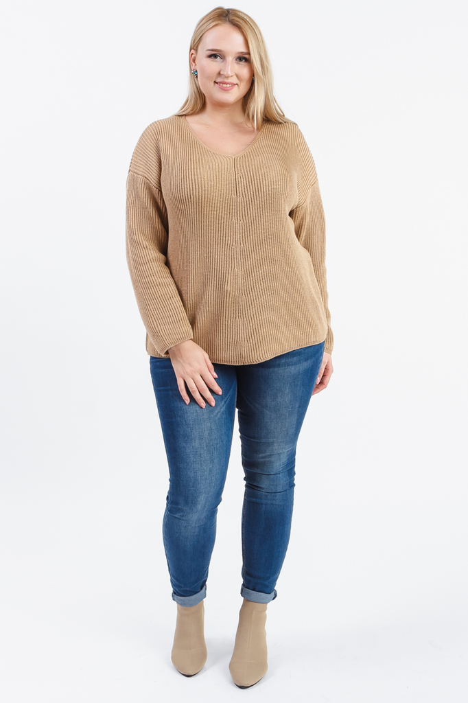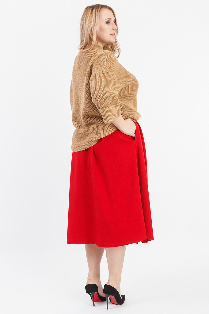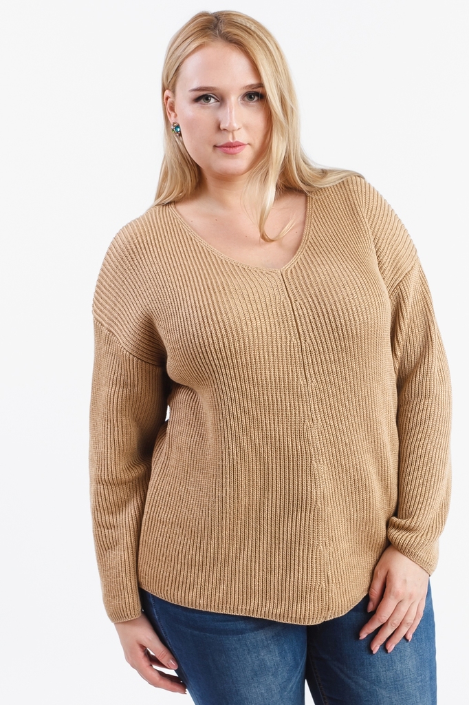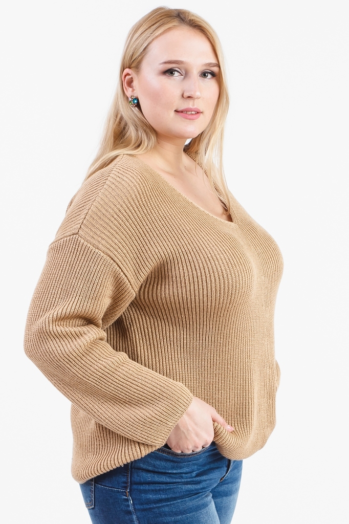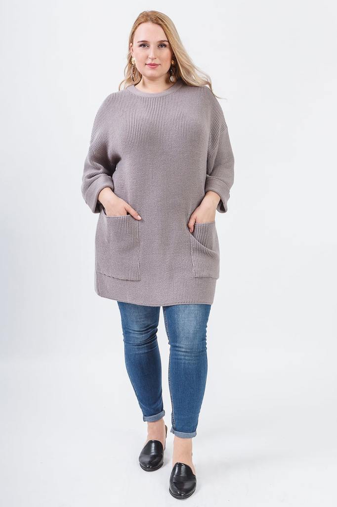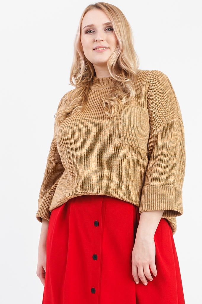 Мягкий джемпер прекрасно сочетается с юбками и брюками. Модель выполнена из пряжи. Вязаная одежда всегда актуальна, отличается комфортом и практичностью. Изделия из пряжи займут достойное место в Ваше... Показать описанием гардеробе и станут прекрасной основой для стильных образов. Джемпер прямого силуэта, "оверсайз". На передней части изделия накладной карман. Горловина обработана бейкой. Рукав рубашечный, 3/4, со спущенной линией плеча и манжетой на отворот по низу. В изделии использованы цвета: песочный. Длина рукава (от конечной плечевой точки) - 43 ± 1 см. Длина изделия - 60 ± 2 см. При создании образа, который Вы видите на фотографии, также была использована расклешенная юбка арт.U0218. Для просмотра модели введите артикул в строке поиска. Параметры девушки-фотомодели: Рост - 170 см. Размер – 52-54 Обхват груди - 106 ± 1 см. Обхват талии - 86 ± 1 см. Обхват бёдер - 119 ± 1 см. Длина переда до талии – 52 ± 1 см. Длина спины до талии - 40 ± 1 см.