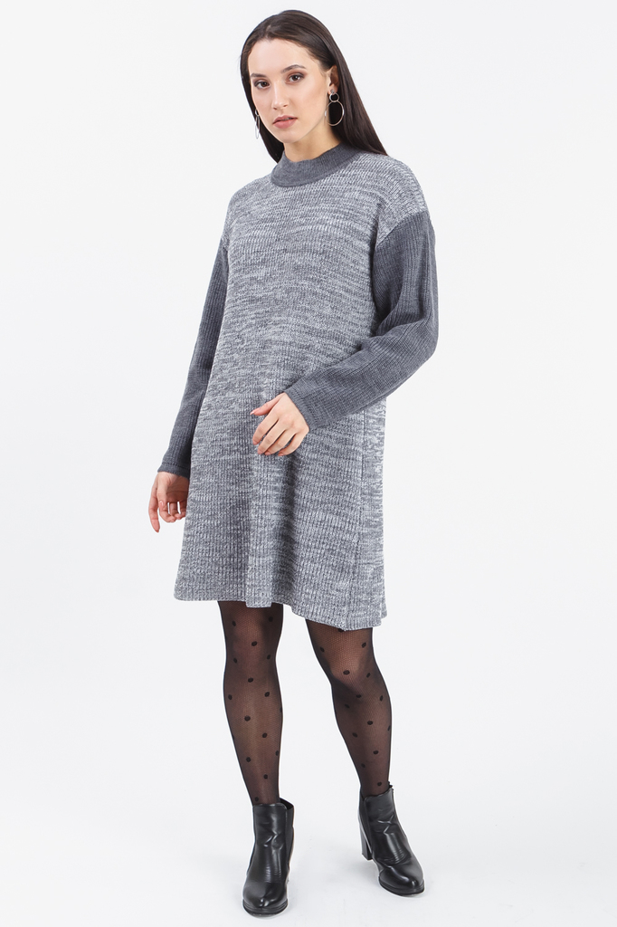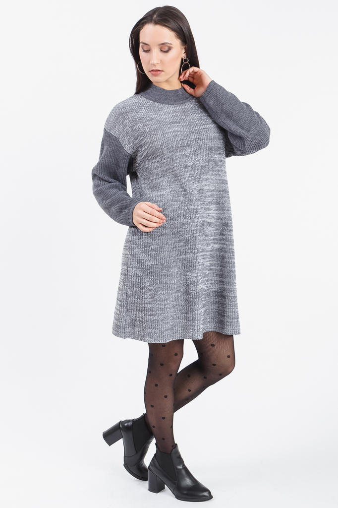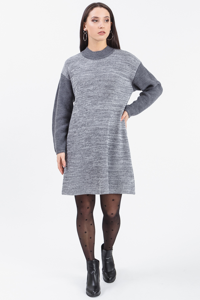 Платье из пряжи объема "оверсайз". Вязаная одежда всегда актуальна, отличается комфортом и практичностью. Изделия из пряжи займут достойное место в гардеробе и станут прекрасной основой для стильных о... Показать описаниебразов. Платье прямого силуэта, "оверсайз". Горловина "стойка". Рукав длинный, свободный. В изделии использованы цвета: серый и др. Длина рукава (от конечной плечевой точки) - 61 ± 1 см. Длина изделия - 86 ± 2 см. Параметры девушки-фотомодели: Рост - 169 см. Размер - 46 Обхват груди - 92 ± 1 см. Обхват талии - 70 ± 1 см. Обхват бёдер - 102 ± 1 см. Длина переда до талии – 42,5 ± 1 см. Длина спины до талии - 40 ± 1 см. Длина руки - 59 ± 1 см.