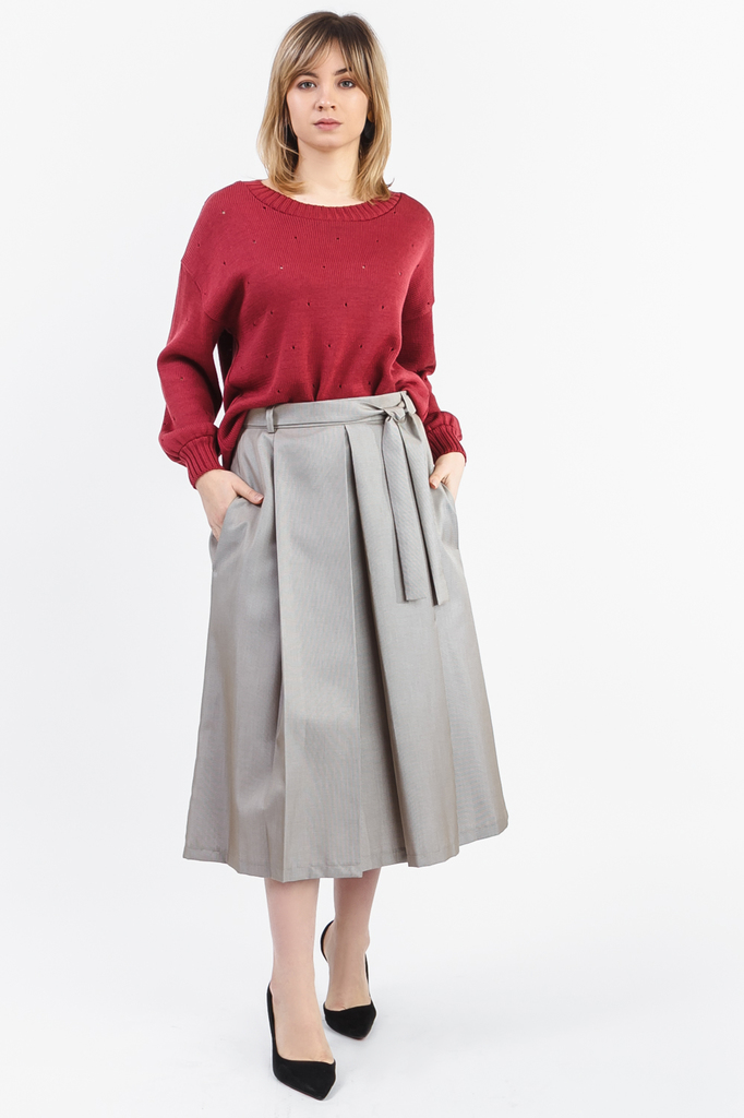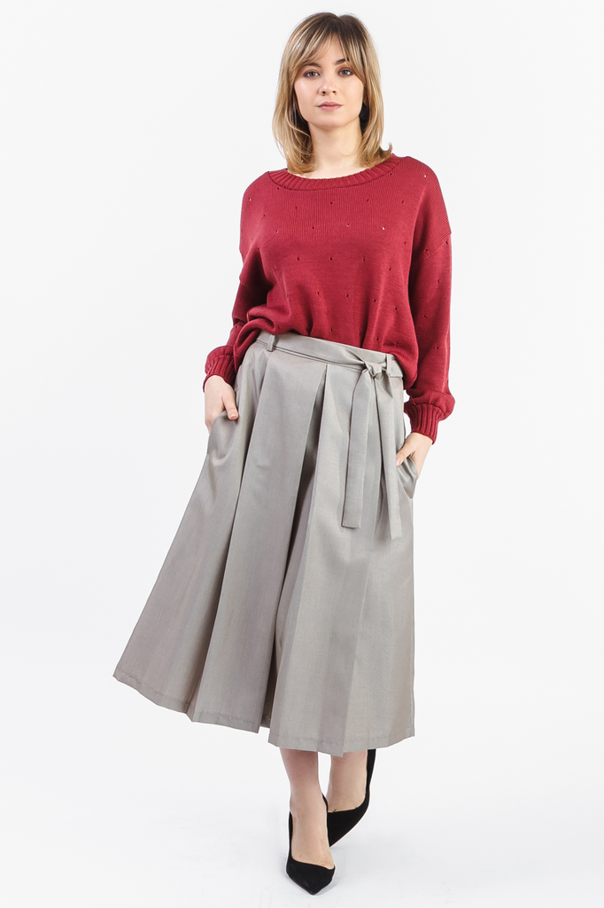 Прелестный джемпер "оверсайз". Модель выполнена из пряжи. Вязаная одежда всегда актуальна, отличается комфортом и практичностью. Изделия из пряжи займут достойное место в гардеробе и станут прекрасной... Показать описание основой для стильных образов. Джемпер прямого силуэта, "оверсайз". Горловина круглая, обработана бейкой. Рукав рубашечный, длинный, со спущенной линией плеча и манжетой по низу. В изделии использованы цвета: бордовый. Длина рукава - 60 ± 1 см. Длина изделия (от конечной плечевой точки) - 60 ± 2 см. При создании образа, который Вы видите на фотографии, также была использована юбка арт.U1318. Для просмотра модели введите артикул в строке поиска. Параметры девушки-фотомодели: Рост - 166 см. Размер - 46-48 Обхват груди - 97,5 ± 1 см. Обхват талии - 79 ± 1 см. Обхват бёдер - 110 ± 1 см. Длина переда до талии - 43,5 ± 1 см. Длина спины до талии - 42 ± 1 см. Длина руки - 59 ± 1 см.