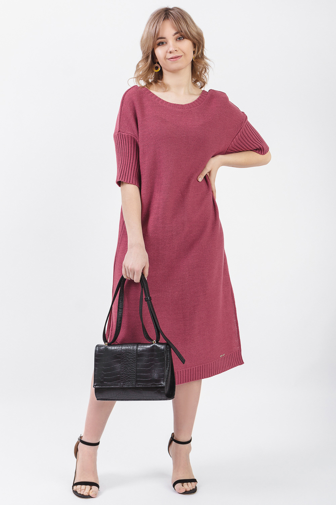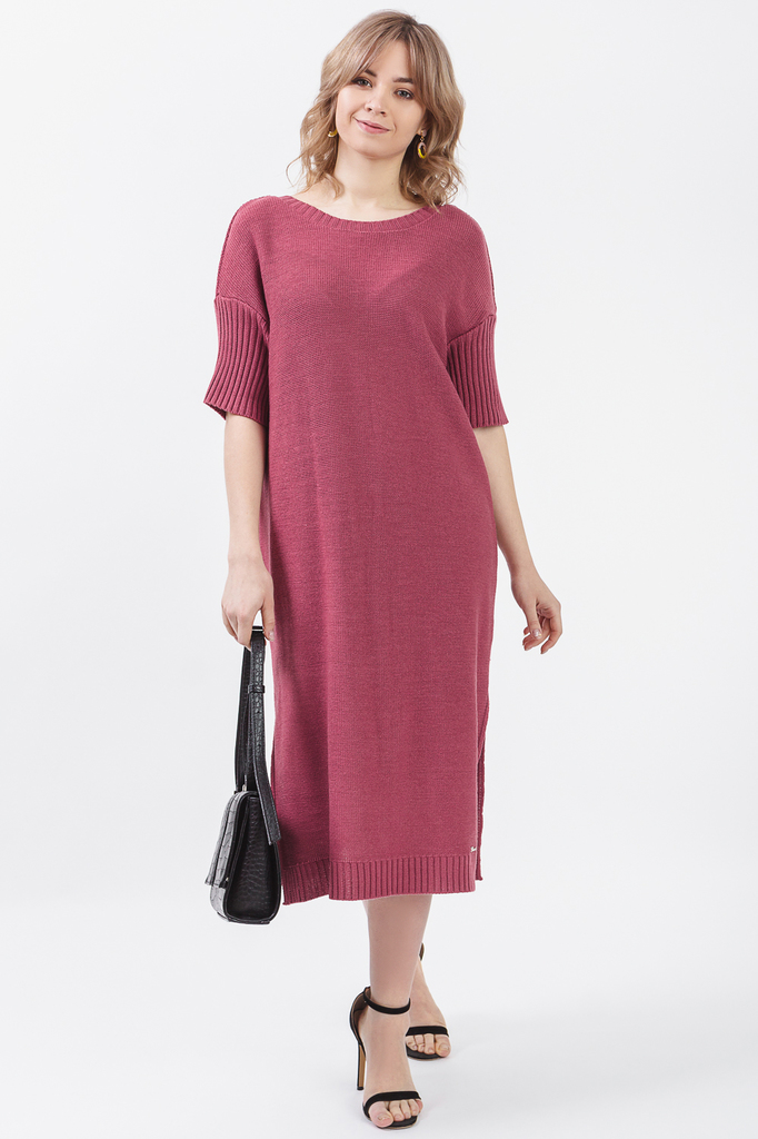 Женственное платье. Модель выполнена из пряжи. Вязаная одежда всегда актуальна, отличается комфортом и практичностью. Изделия из пряжи займут достойное место в Вашем гардеробе и станут прекрасной осно... Показать описаниевой для стильных образов. Платье прямое, по объему "оверсайз". Горловина обработана бейкой-резинкой, V-образная на спинке. Рукав короткий. В боковых швах разрезы. По низу изделия резинка. В изделии использованы цвета: розовый. Длина рукава (от конечной плечевой точки) - 26 ± 1 см. Длина изделия: 46 размер - 101 ± 2 см. 48 размер - 101 ± 2 см. 50 размер - 101 ± 2 см. 52 размер - 101 ± 2 см. 54 размер - 103 ± 2 см. 56 размер - 103 ± 2 см. 58 размер - 103 ± 2 см. При создании образа, который Вы видите на фотографии, также была использована стильная сумка арт. SMK9519. Для просмотра модели введите артикул в строке поиска. Параметры девушки-фотомодели: Рост - 166 см. Размер - 46-48 Обхват груди - 93 ± 1 см. Обхват талии - 69 ± 1 см. Обхват бёдер - 101 ± 1 см. Длина переда до талии - 44 ± 1 см. Длина спины до талии - 42 ± 1 см. Длина руки - 59 ± 1 см.