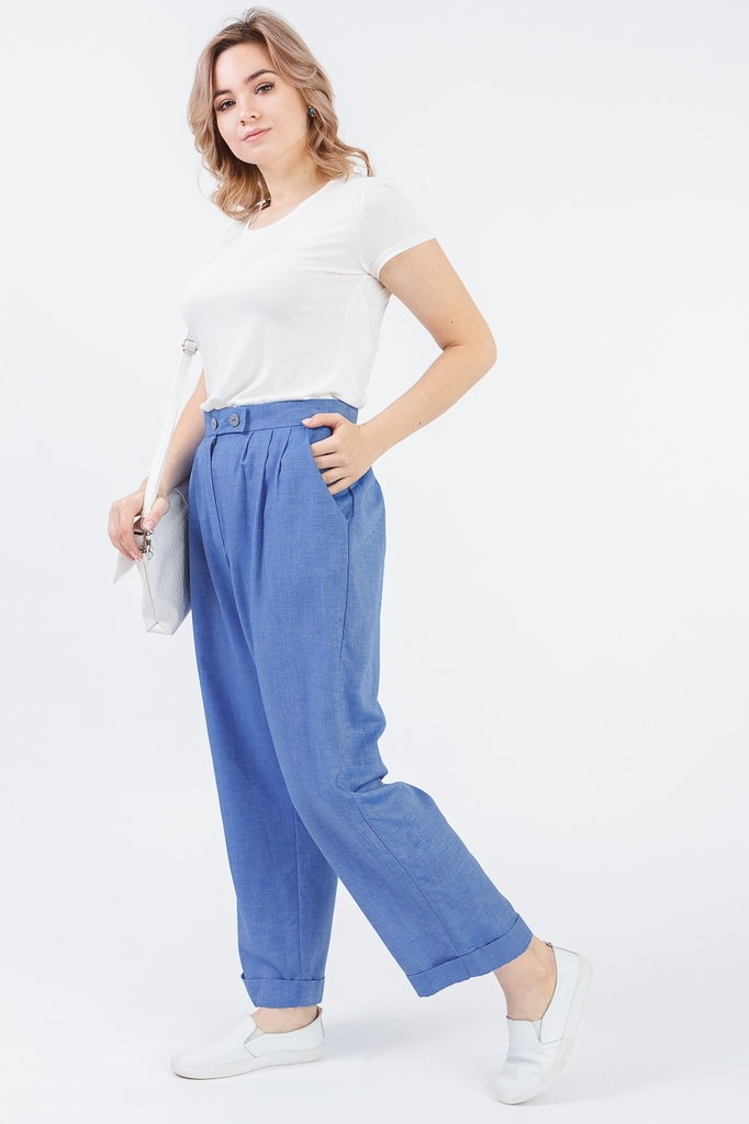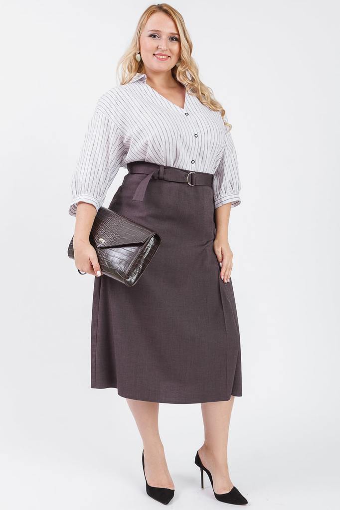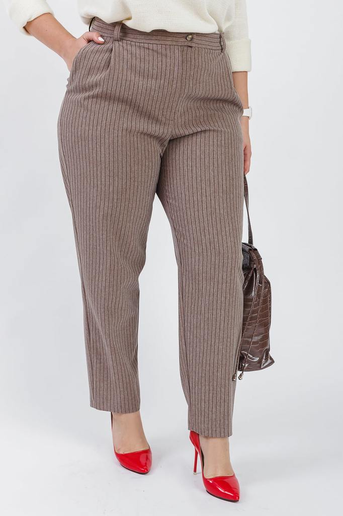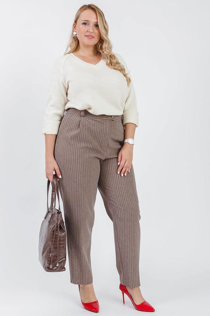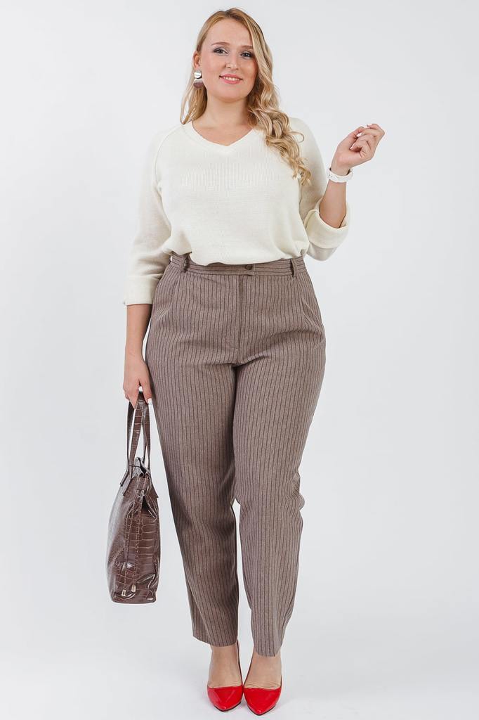 Классические брюки – универсальный предмет гардероба, который подходит для всех типов фигуры. Идеальным дополнением станет водолазка или атласная блуза. Принт в тонкую вертикальную полоску визуально в... Показать описаниеытягивает силуэт. Брюки классического силуэта, немного зауженные к низу. Средние по объему. Верх брюк обработан притачным поясом со шлевками. В отрезных бочках - карманы. Застежка - "гульфик" с молнией. Цвет: коричневый. Длина брюк (от пояса) - 103 ± 2 см. Ширина брюк (по низу) - 38 ± 2 см. При создании образа, который Вы видите на фотографии, также были использованы джемпер арт.DG2619 и сумка арт.SMK0318. Для просмотра модели введите артикул в строке поиска. Параметры девушки-фотомодели: Рост - 170 см. Размер - 52 Обхват груди - 102 ± 1 см. Обхват талии - 82 ± 1 см. Обхват бёдер - 118 ± 1 см.