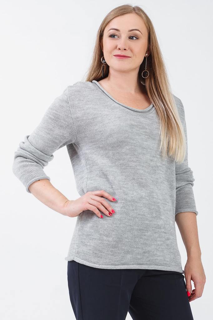 Женский джемпер с длинными рукавами. Модель выполнена из пряжи. Вязаные изделия - это красота, тепло и комфорт. В вязаных вещах очень легко оставаться женственной и в то же время не замёрзнуть. Джемпе... Показать описаниер прямого силуэта. Горловина V-образная, обработана бейкой-руликом. Рукава втачные, длинные. Цвет: серый. Длина рукава (от конечной плечевой точки) - 59 ± 1 см. Длина изделия: 46 размер - 64 ± 2 см. 48 размер - 64 ± 2 см. 50 размер - 64 ± 2 см. 52 размер - 64 ± 2 см. 54 размер - 66 ± 2 см. 56 размер - 66 ± 2 см. 58 размер - 66 ± 2 см. При создании образа, который Вы видите на фотографии, также были использованы брюки арт.B0219. Для просмотра модели введите артикул в строке поиска. Параметры девушки-фотомодели: Рост - 168 см. Размер - 48 Обхват груди - 97 ± 1 см. Обхват талии - 77 ± 1 см. Обхват бёдер - 104 ± 1 см. Длина переда до талии - 48 ± 1 см. Длина спины до талии - 40 ± 1 см. Длина руки - 60 ± 1 см.