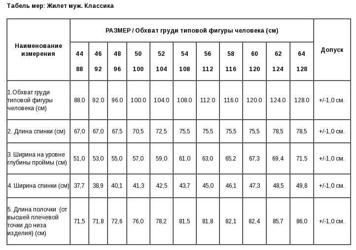 Ссылка на размерную сетку с замерами конкретных моделей.