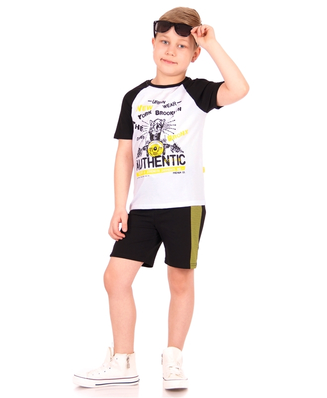 Состав: кулир с лайкрой / хлопок 92% + лайкра 8%, Футболка для мальчика выполнена из легкого хлопкового полотна с лайкрой. Изделие с короткими рукавами-реглан, украшено стильным принтом. Отличный вари... Показать описаниеант для летнего дня! Уход: только машинная стирка (руками не стирать!) при температуре 40 градусов, без предварительного замачивания. Изделия с печатью и декором перед стиркой необходимо вывернуть на изнаночную сторону.