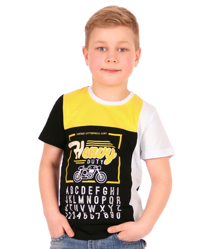 Состав: пике / хлопок 100%, Футболка для мальчика выполнена из тонкого хлопкового полотна. Изделие сложного кроя, с полочкой, выполненной в контрастном цветосочетании, декорировано модным дизайнерским... Показать описание принтом. Отличный вариант для летнего дня! Уход: только машинная стирка (руками не стирать!) при температуре 40 градусов, без предварительного замачивания. Изделия с печатью и декором перед стиркой необходимо вывернуть на изнаночную сторону.