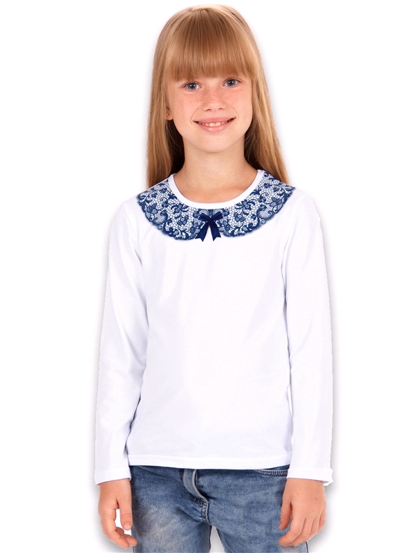Состав: кулир с лайкрой / хлопок 92% + лайкра 8%. Лонгслив для девочки выполнен из легкого хлопкового полотна с лайкрой. Изделие с длинными рукавами, декорировано печатью, имитирующей кружевной воротн... Показать описаниеичок. Незаменимый предмет гардероба для школьниц! Уход: только машинная стирка (руками не стирать!) при температуре 40 градусов, без предварительного замачивания. Изделия с печатью и декором перед стиркой необходимо вывернуть на изнаночную сторону.