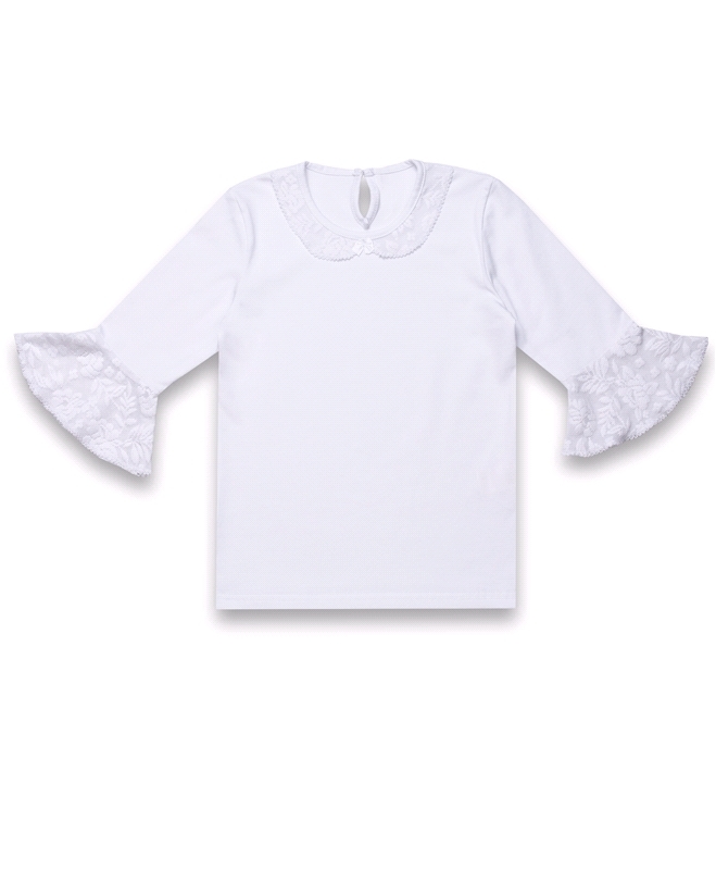 Состав: кулир с лайкрой / хлопок 92% + лайкра 8%. Лонгслив для девочки выполнен из хлопкового полотна с лайкрой. Изделие с рукавами длиной 3/4 украшенными кружевом, декорировано отложным воротником. О... Показать описаниетличный вариант для школьницы на каждый день! Уход: только машинная стирка (руками не стирать!) при температуре 40 градусов, без предварительного замачивания.