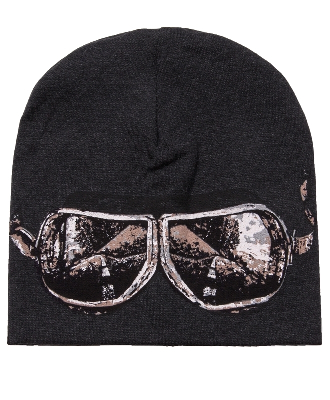 Состав: ластик / хлопок 68% + ПЭ 27% + лайкра 5%. Оригинальная шапочка из мягкого хлопкового полотна с лайкрой. Изделие декорировано дизайнерским принтом в виде имитации очков летчика. Отличный вариан... Показать описаниет на каждый день! Уход: только машинная стирка (руками не стирать!) при температуре 40 градусов, без предварительного замачивания. Изделия с печатью и декором перед стиркой необходимо вывернуть на изнаночную сторону.