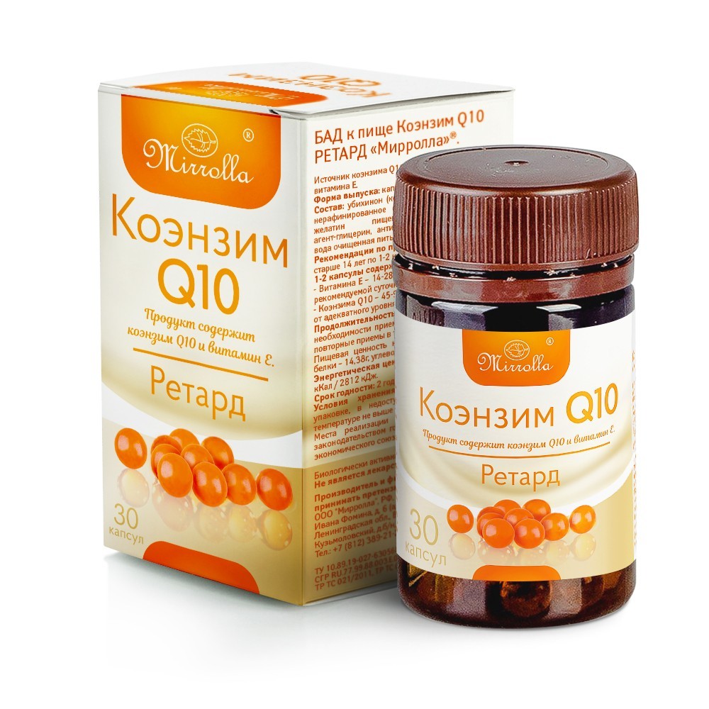 Иммуностимуляция. Укрепление функций организма. Коэнзим Q10 Ретард - натуральный антиоксидант, универсальный источник энергии, необходимый для всех процессов в организме человека. - стимулирует работу... Показать описание иммунной системы; - замедляет процессы старения; - защищает мембрану клеток от воздействия свободных радикалов; - провоцирует витамин Е на борьбу со свободными радикалами; - активизирует процессы регенерации; - нормализует окислительные реакции; - участвует в обменных процессах; - ускоряет метаболизм; - принимает участие в кроветворении; - способствует функционированию мышечных тканей; - поддерживает здоровье сердечно-сосудистой системы. Источника коэнзима Q10, дополнительный источник витамина Е. Рекомендации по применению: взрослым и детям старше 14 лет по 1-2 капсулы в день во время еды. Продолжительность приема: 4-6 недель. При необходимости прием можно повторить. Возможны повторные приемы в течение года. Противопоказания: индивидуальная непереносимость компонентов, беременность, кормление грудью. Перед применением рекомендуется проконсультироваться с врачом. Срок годности: 2 года. СОСТАВ: убихинон (коэнзим Q10), витамин Е, масло нерафинированное оливковое, оболочка капсулы (желатин пищевой, Е422, Е330, вода очищенная питьевая). СПОСОБ ПРИМЕНЕНИЯ: Рекомендации по применению: взрослым и детям старше 14 лет по 1-2 капсулы в день во время еды.